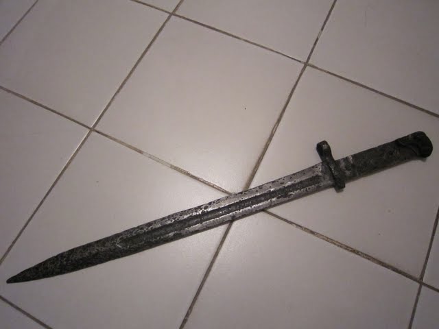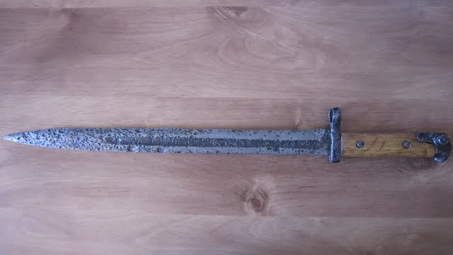 А еще этот штык скорей всего "воевал", его откопали под Калугой в районе, где велись бои во время ВОВ. Ржавый быыыыл......