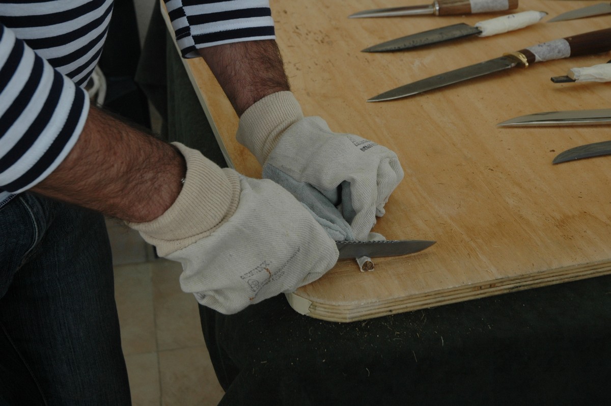 Чем-то очень напомнил знаменитый кхукри. Общим видом, легким изгибом лезвия. Нож не очень большой, с узким клинком и выполнен из стали О-1. Спуски не очень высокие, по ощущениям ближе к линзе. В принципе, сидит в руке уверено, рукоять с небольшим брюшком и удерживать нож легко. Я бы сказал, что это «нож последнего шанса», как с некоторого времени стали называть ножи, которые можно иногда носить на подвесе на шее, в скрытом ношении, и использовать его как оружие или инструмент в крайних случаях. По крайней мере, мне этот нож таковым и показался. Осталось проверить, что он может сделать…
