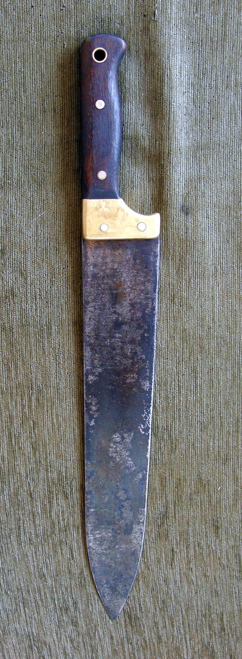 1. Большой поварской нож советского производства, на старой пластиковой рукоятке было клеймо БЗ (Беляйковский завод), 46 см.