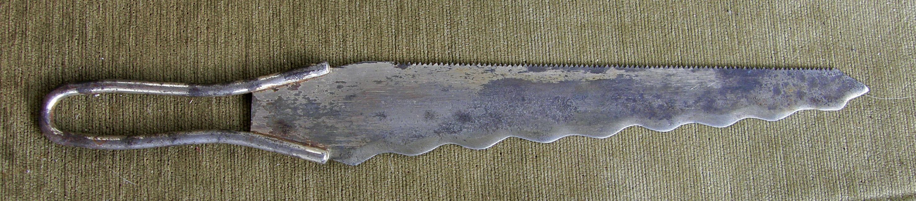 5. Зубастый хлебный нож, клеймо неразборчиво, 40 см.