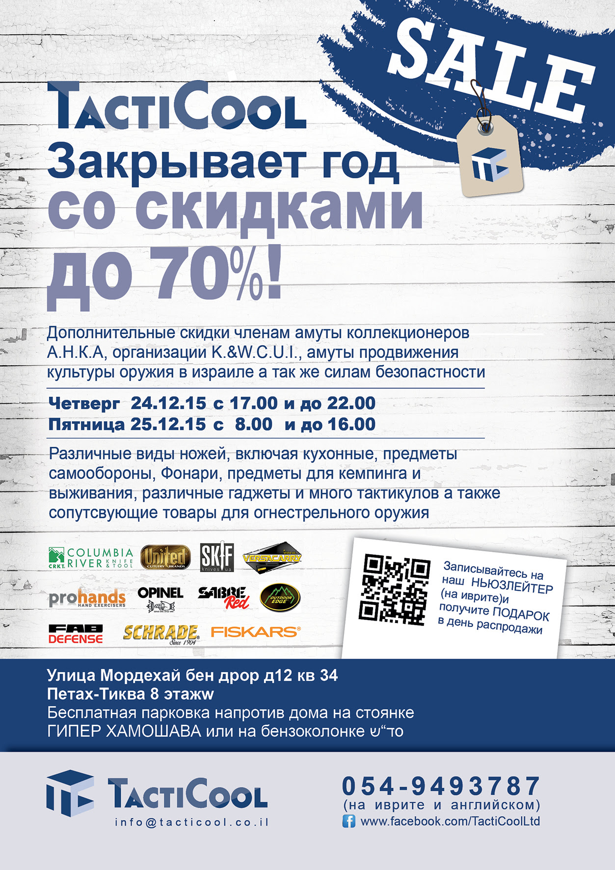 Дополнительные скидки для участников организации - " Союз Мастеров и Коллекционеров Холодного Оружия Израиля - " K.W.C.U.I. "