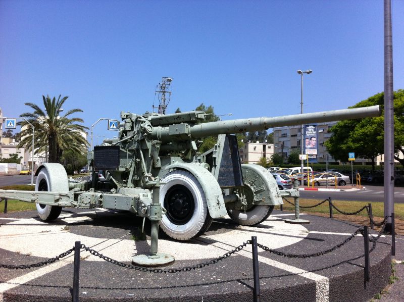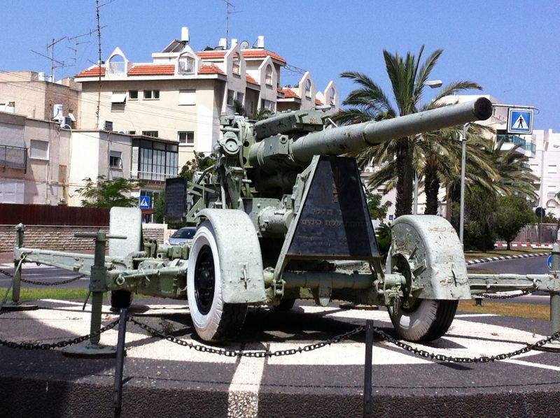 Если не ошибаюсь , это Крупповская 76 мм пушка периода WW-1 модернизированная в Израиле ( в бронелисте вырезы под большие деревянные колеса ) пару лет назад фоткал ,поищу выставлю !