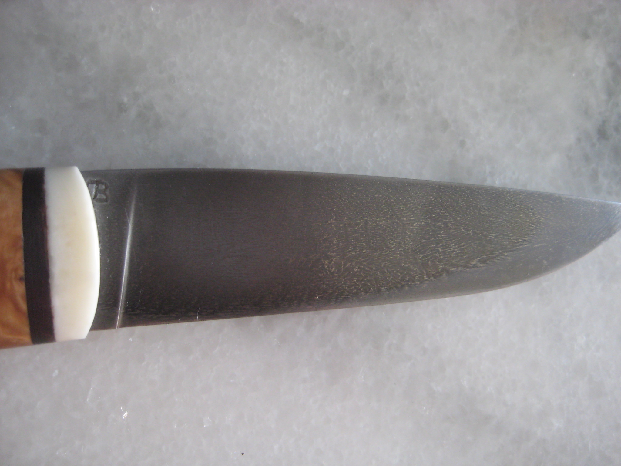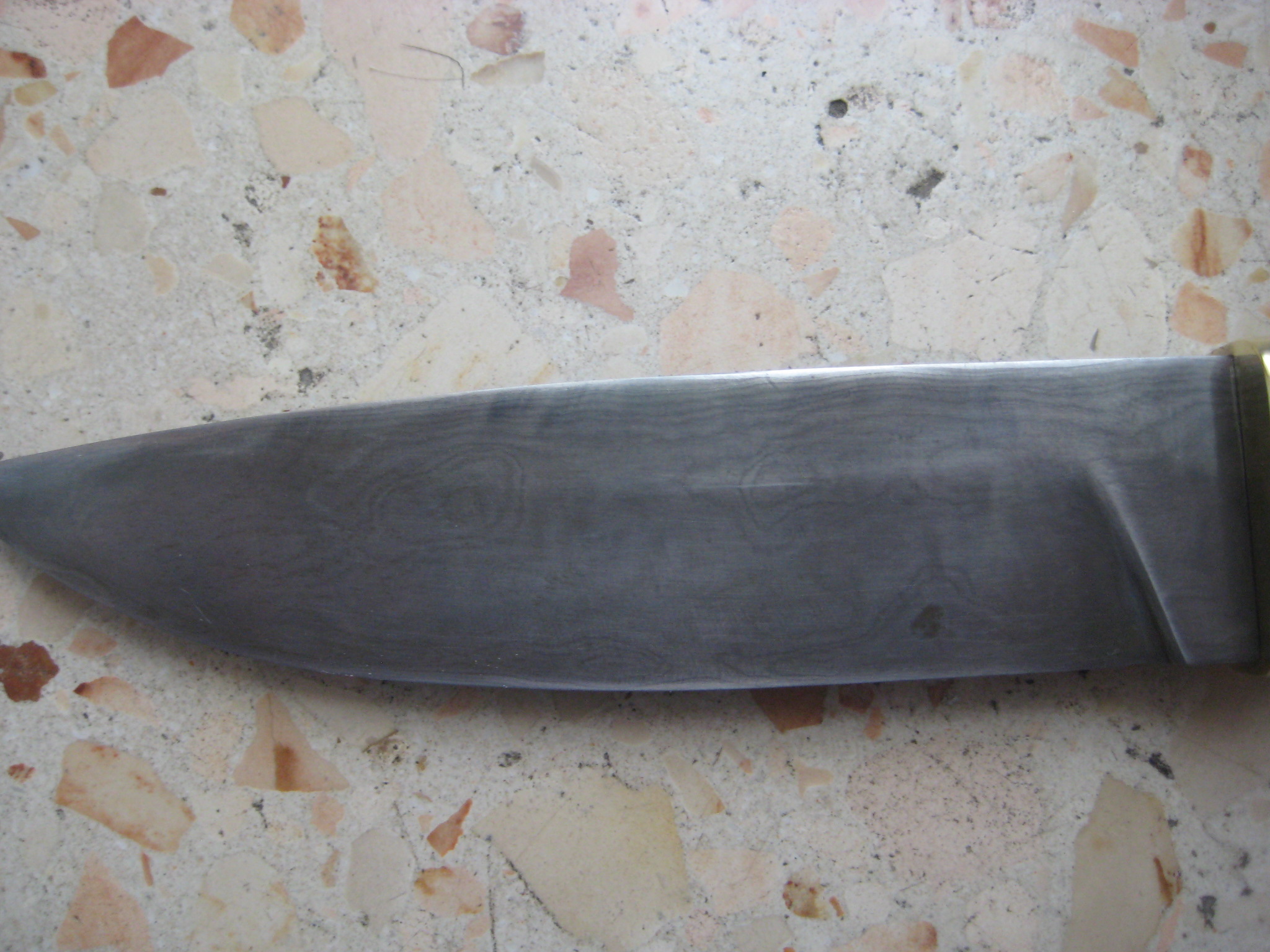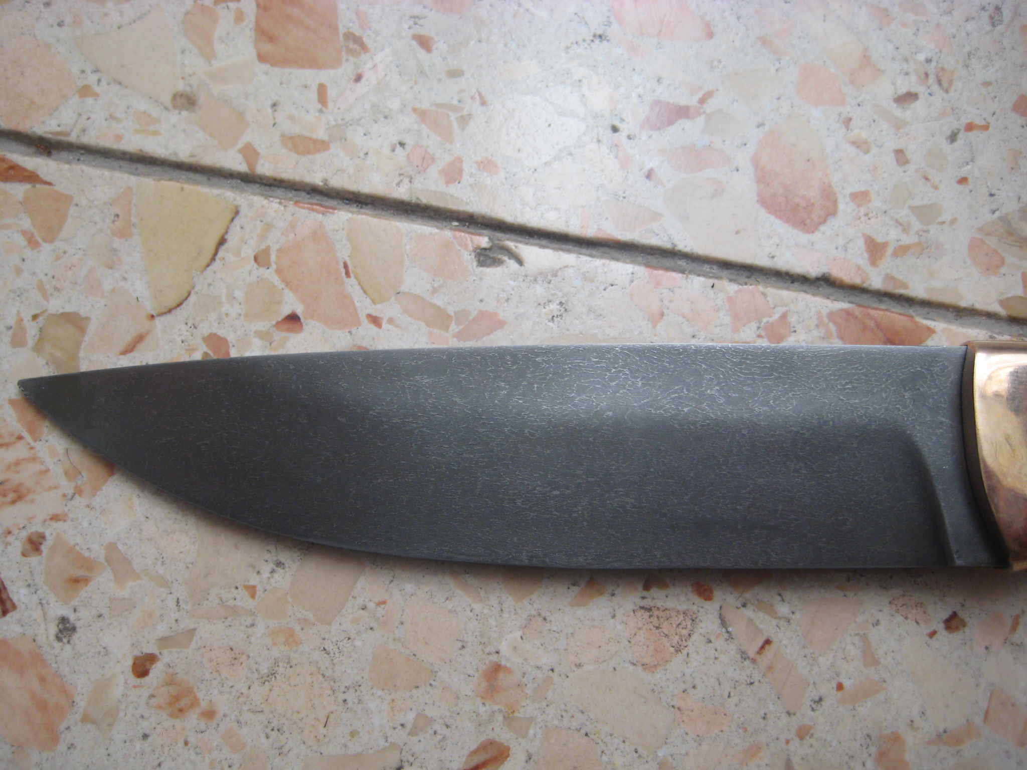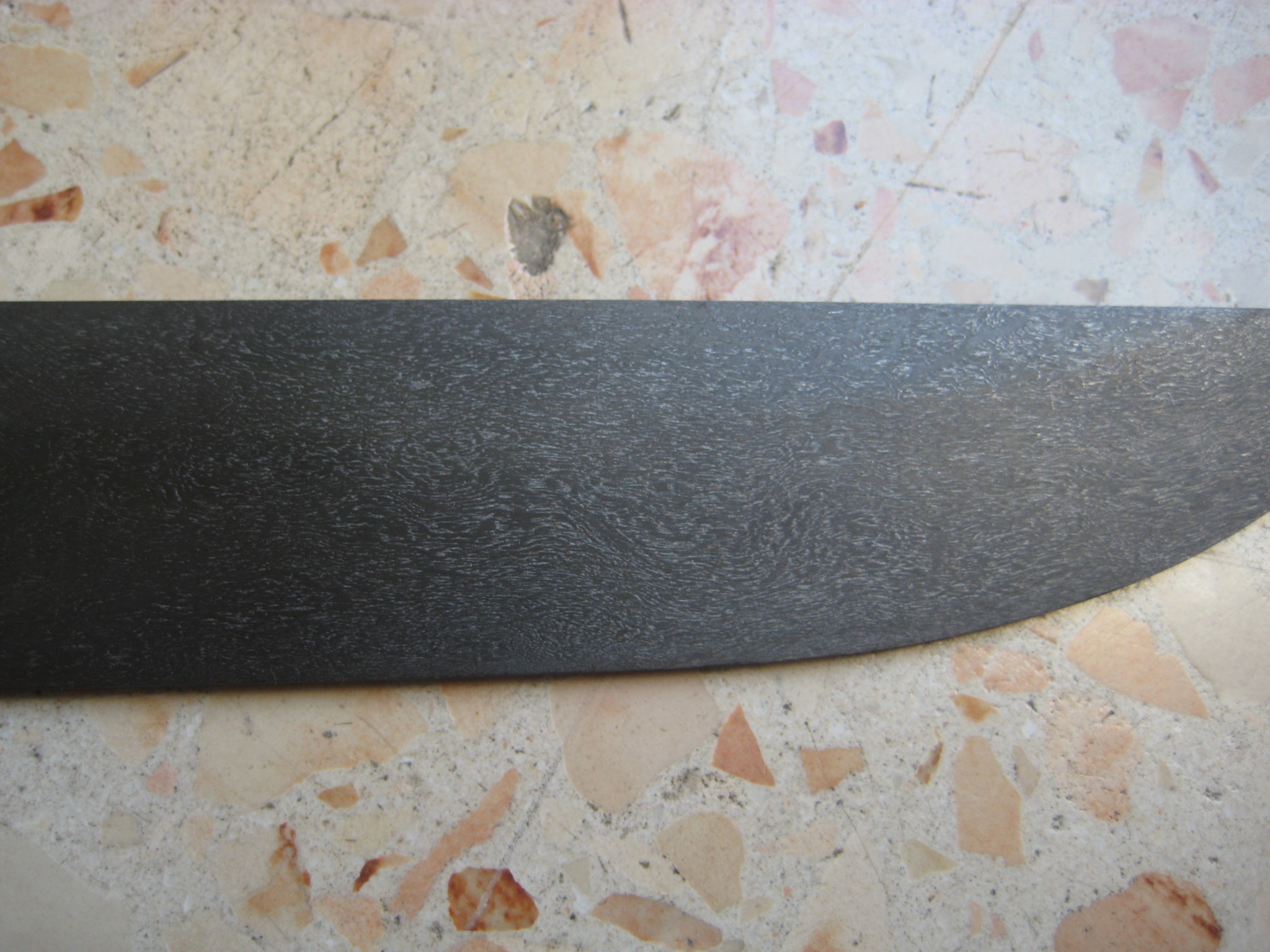 И кстати, по подшипникам. По опыту, своему и чужому, их добавление производит в металле удивительные изменения -как бы не скакала баба - задом или передом, а дело идет своим чередом. Т.е. узор наследственно унылый. Что-то с ним, с подшипником, не так. Два нижних  -сталь, просто сталь. Дендритный...красив, узор типа "слоновья кожа", но будет хрупкий в тонкой кромке, на мой взгляд надо интенсивнее ковать...плюс еще кое-что, с опытом. Перетравленный уже лучше, и надо непременно отметить, что травление булатов это особое искусство, некий талант плюс опыт. Я смолично выбросил немало клинков и бывал изрядно удивлен, когда мне показывали роскошные узоры с улыбкой -Ваш, Леонид Борисович!