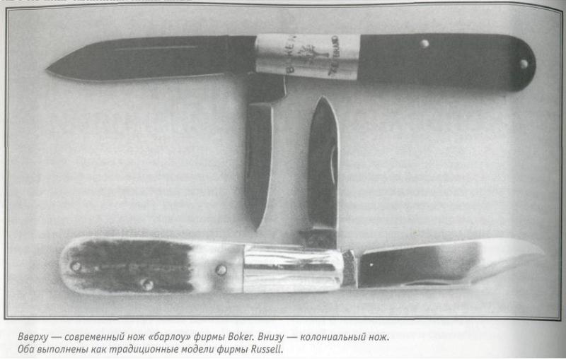 придавала дополнительный запас прочности относительно маленькому рабочему ножу. В тот период, когда Соединенные Штаты представляли собой по большей части сельскую местность, карманные ножи «барлоу» были повседневной необходимостью. Так происходит с любой моделью складного ножа: как только ножи «барлоу» фирмы Russell стали пользоваться успехом, все заводы - производители ножевых изделий последовали примеру фирмы-лидера и добавили подобные версии к ассортименту своей продукции. Большинство этих изделии были едва ли не точны+ми копиями ножей фирмы Russell, однако некоторые производители экспериментировали с размерами, формами клинков и материалами для рукояток. После Второй мировой войны стандартный нож «барлоу» постепенно утратил популярность среди пользователей ножей, однако такие фирмы, как Queen, Camillus и Boker, продолжают выпускать эту модель. Стандартный 3/ 3/8-дюймовый «барлоу» остается одним из прочнейших рабочих складных ножей своего размера. Фермеры разных поколений неоднократно доказывали, что если нож «барлоу» в верных руках, то работа будет сделана.
