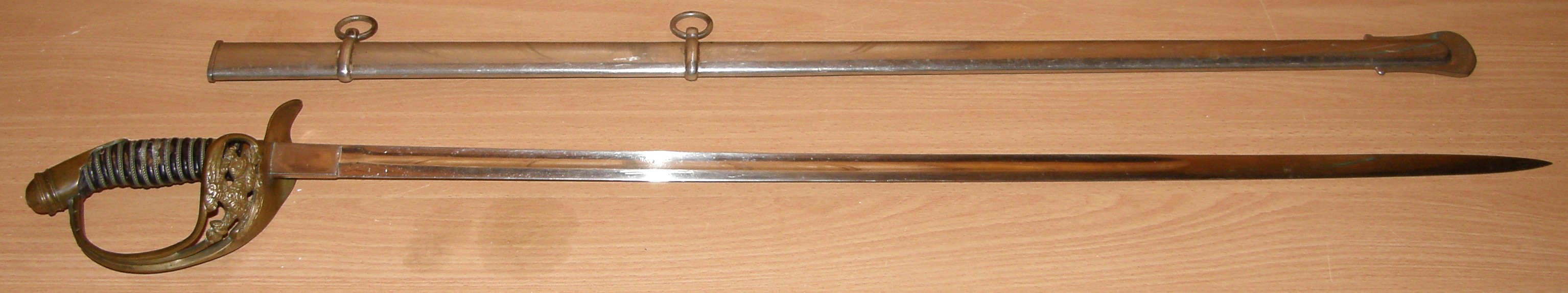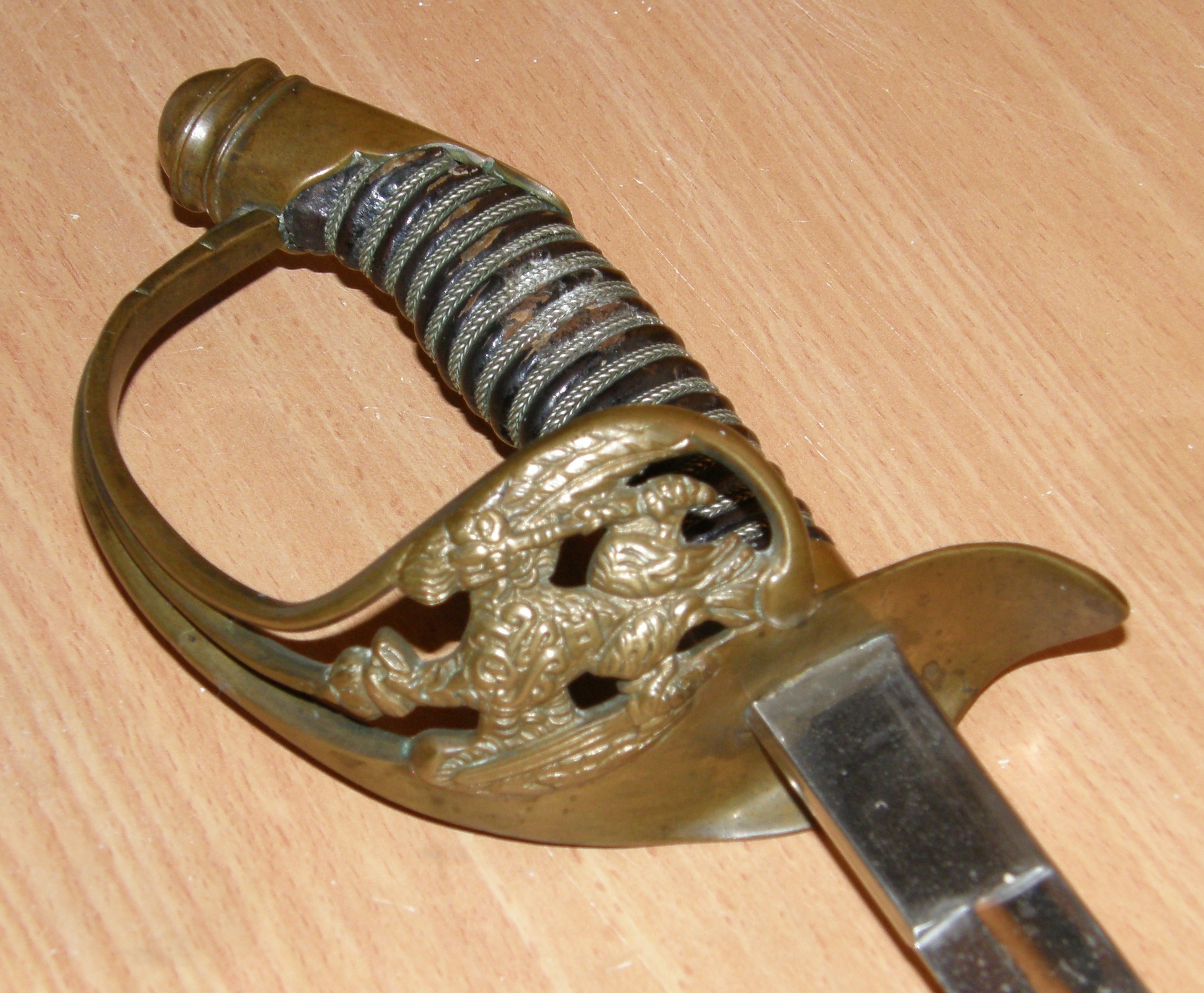 Товарный знак и рисунок на клинке скрыты слоем никеля и плохо просматриваются.
