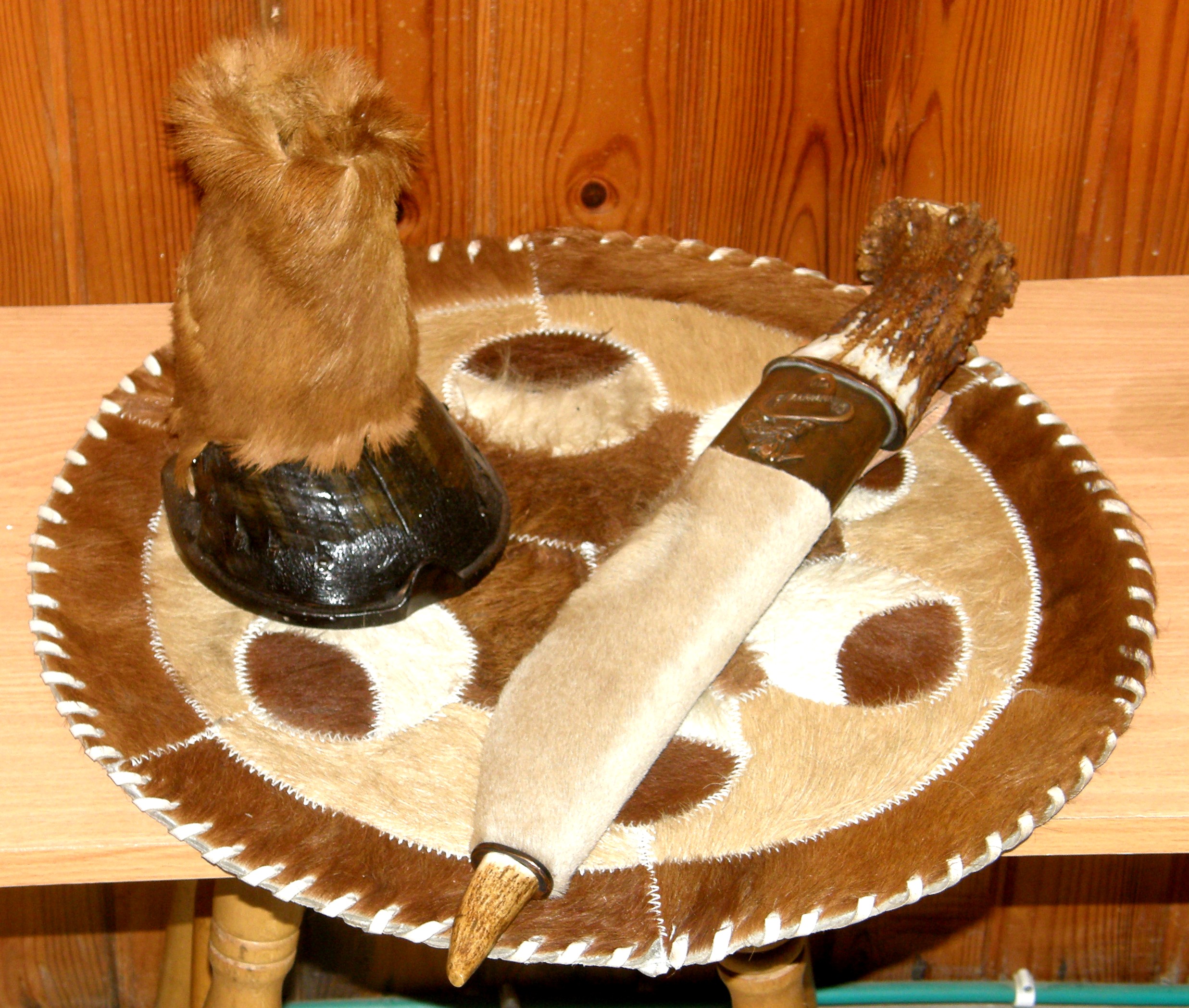 Ножны-дерево, натуральный мех, медь, рог лося.