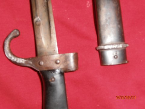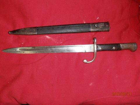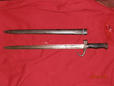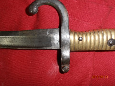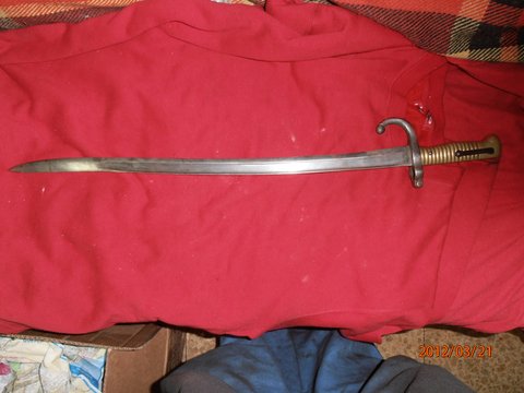 господа хочу предложить вам жемчужену.штык к винтовке гра 1879г производства „Manufacture d'Armes de Saint-Etienne состояние близкое к идеальному есть незначительное повреждение на клинке непонятного происхождения (или удар или кто-то пытался заточить) правда одно но он без ножен.цена 500ш http://www.bayonet.lv/ru/articles/France/M1874.htm продан