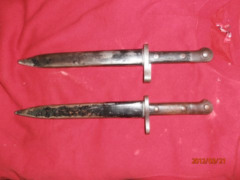 представляю вам Штык образца 1889 года к винтовке системы Краг – Йоргенсена.красавцы -два вида рукоятка из дерева и пресованной кожи