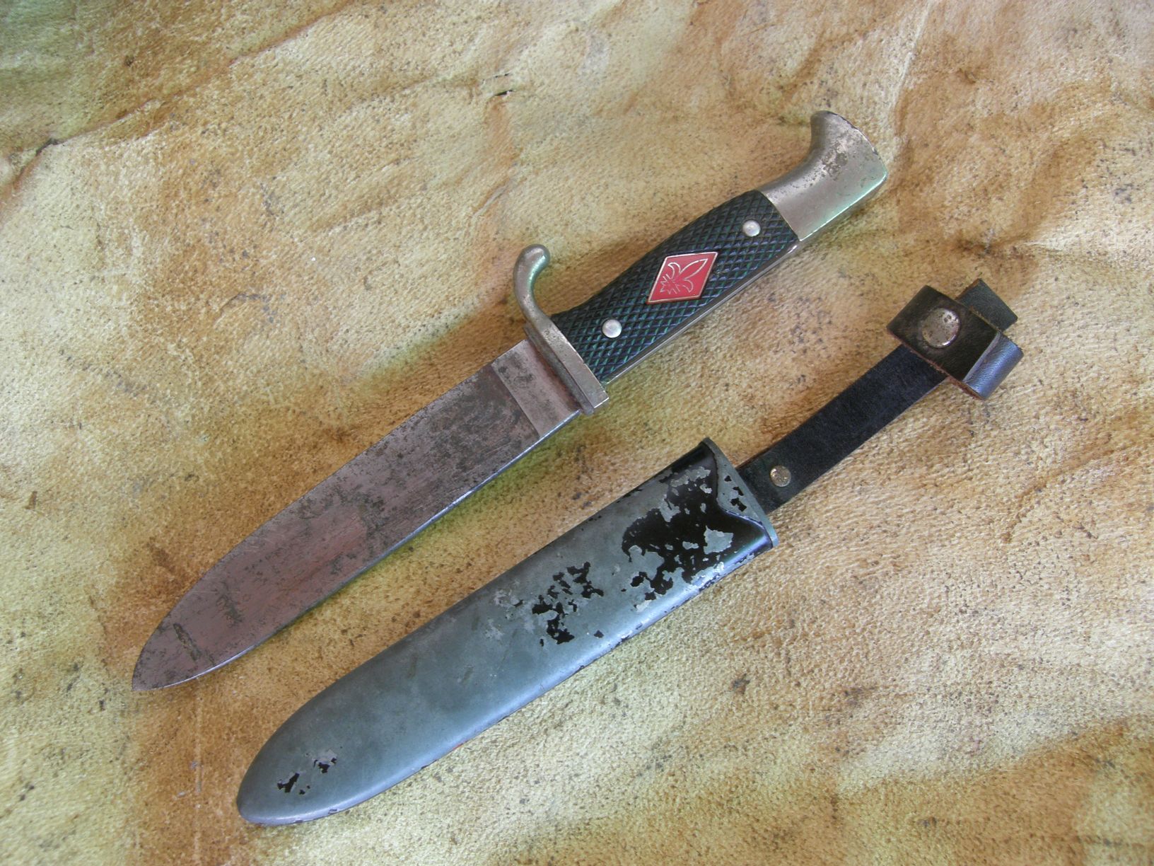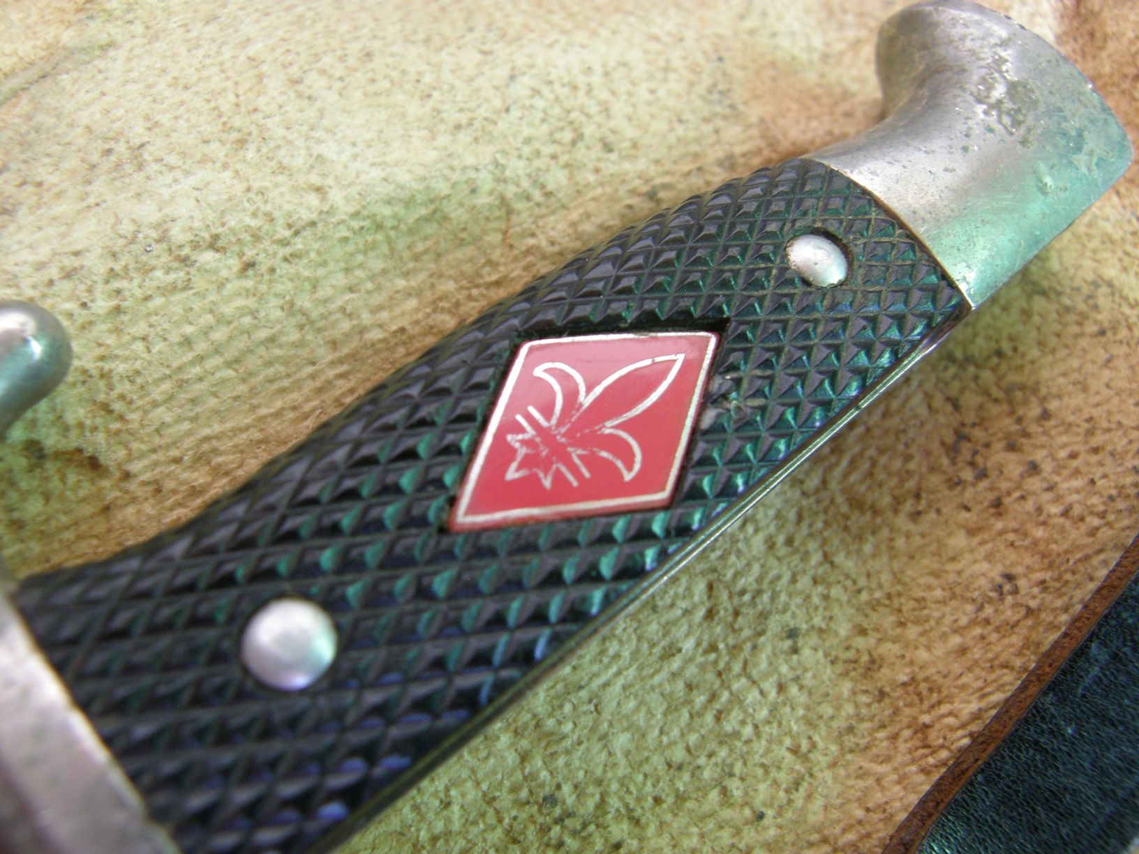Нож скаутов ,германия .Нож был изготовлен на основе ножа для Гитлер юнгенд в послевоенное время. Единственным отличием является эмблема на накладках, вместо свастики ,международный символ движения скаутов ,лилия.