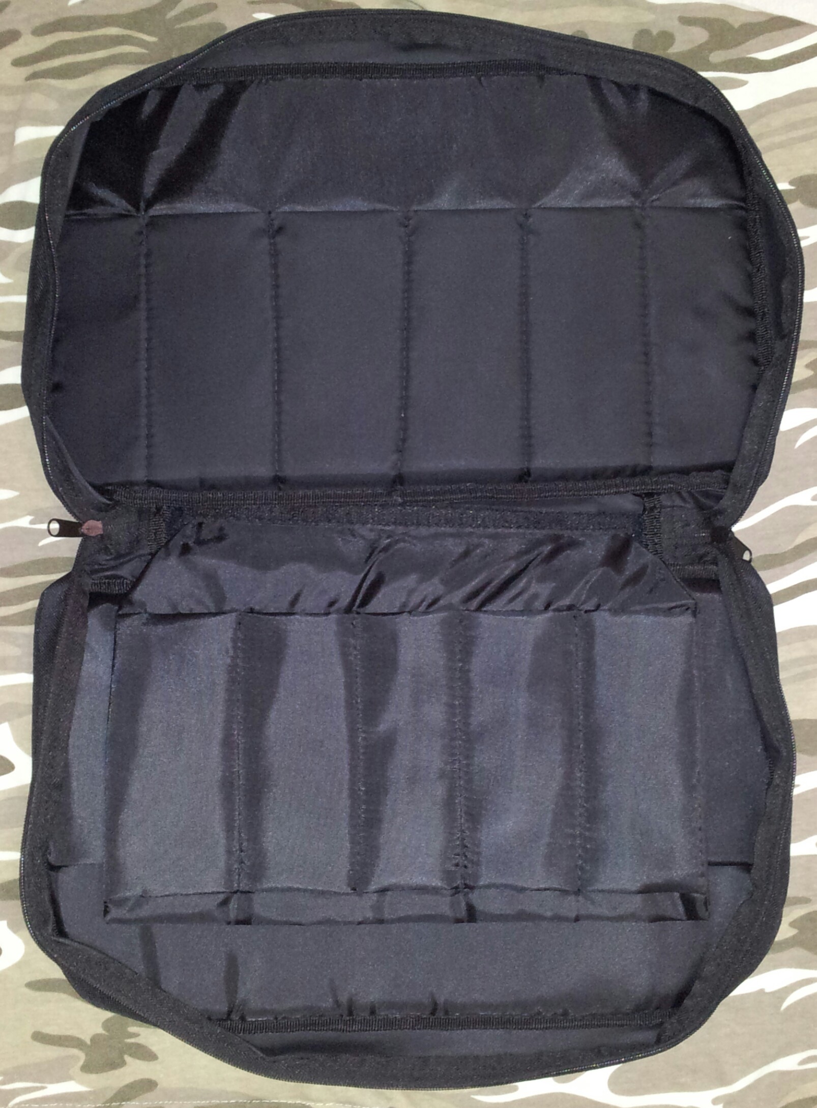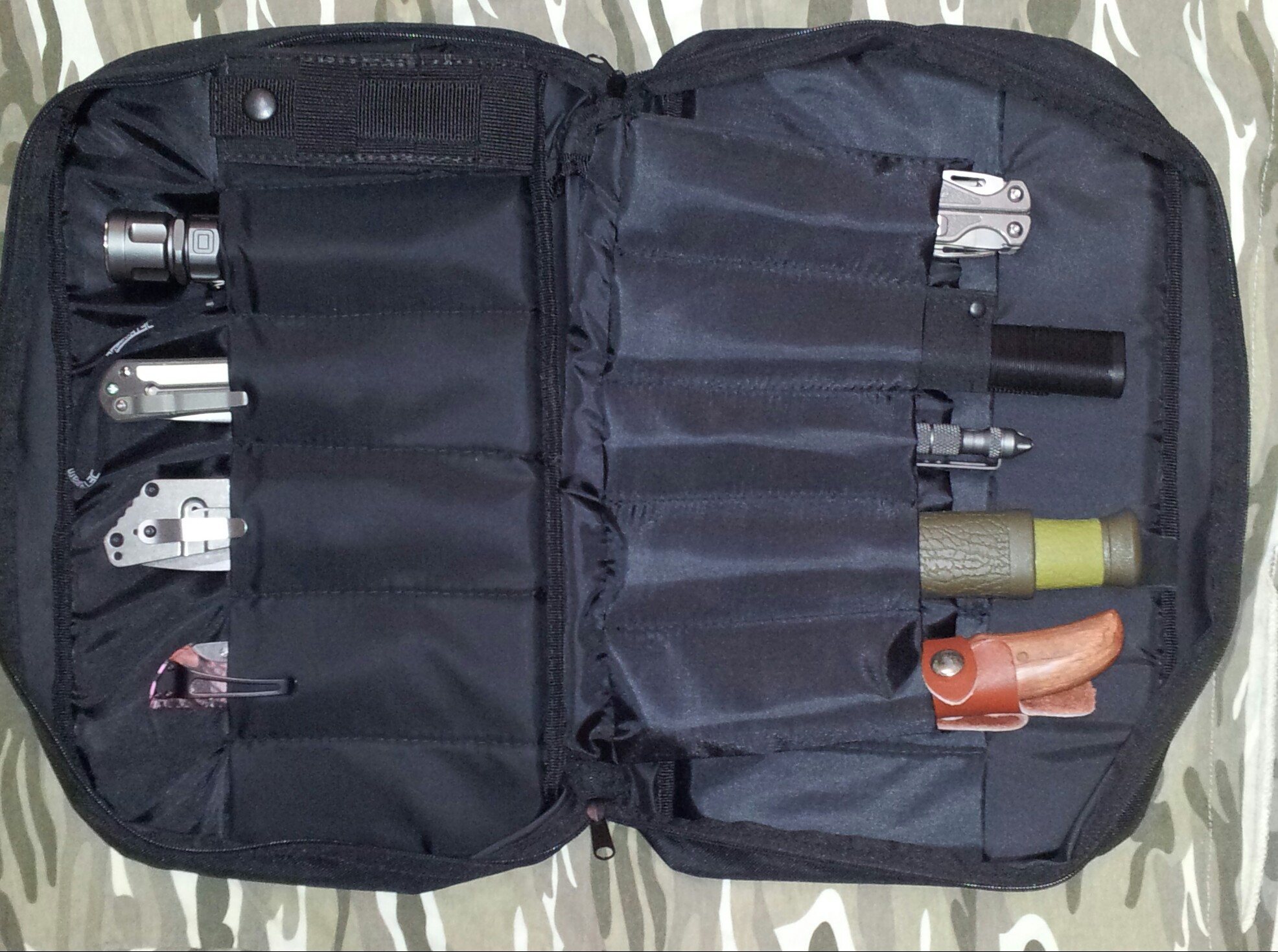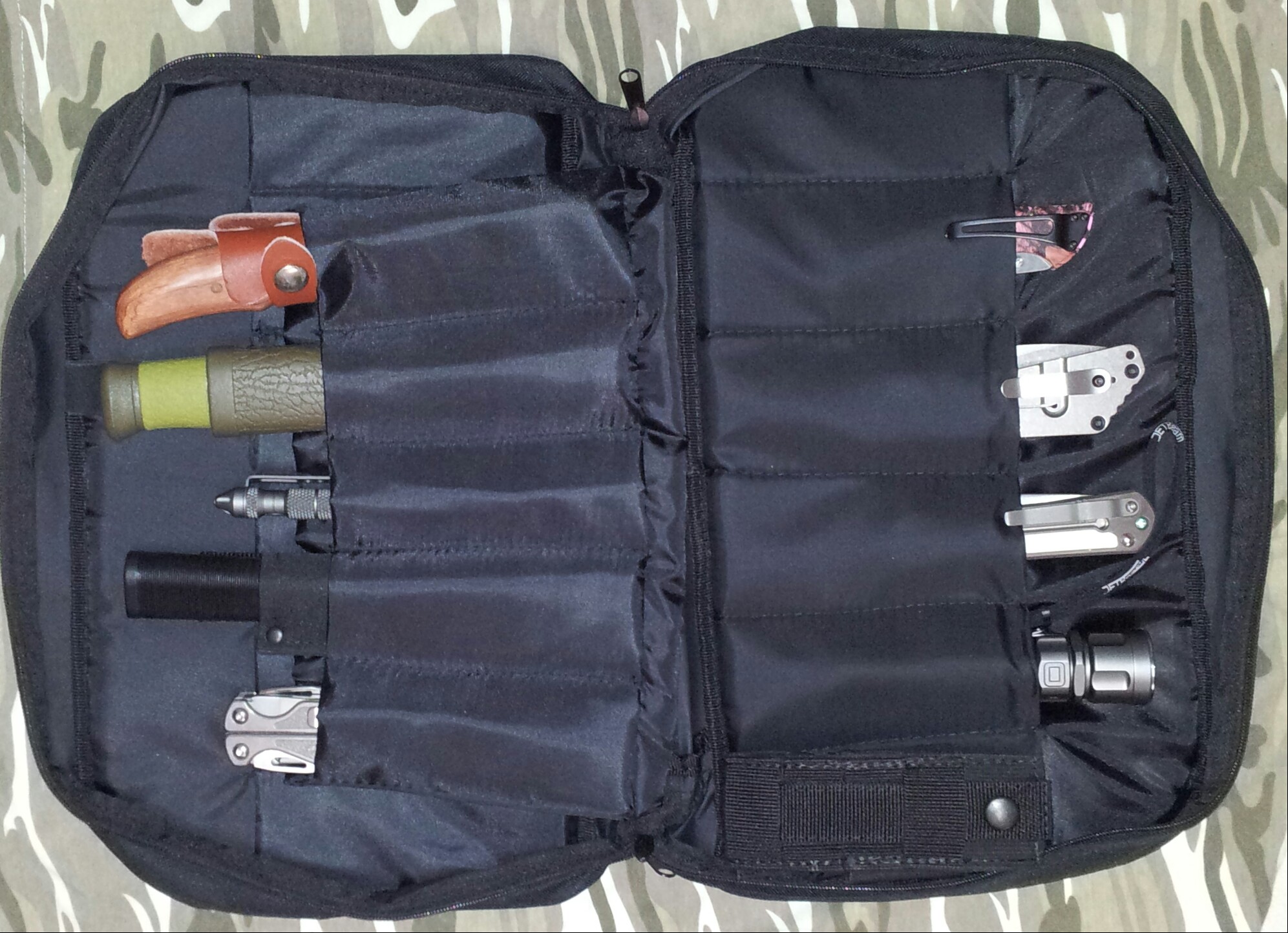 Средний вкладыш для ножей съемный на "липучке", есть четыре секции для хранения.