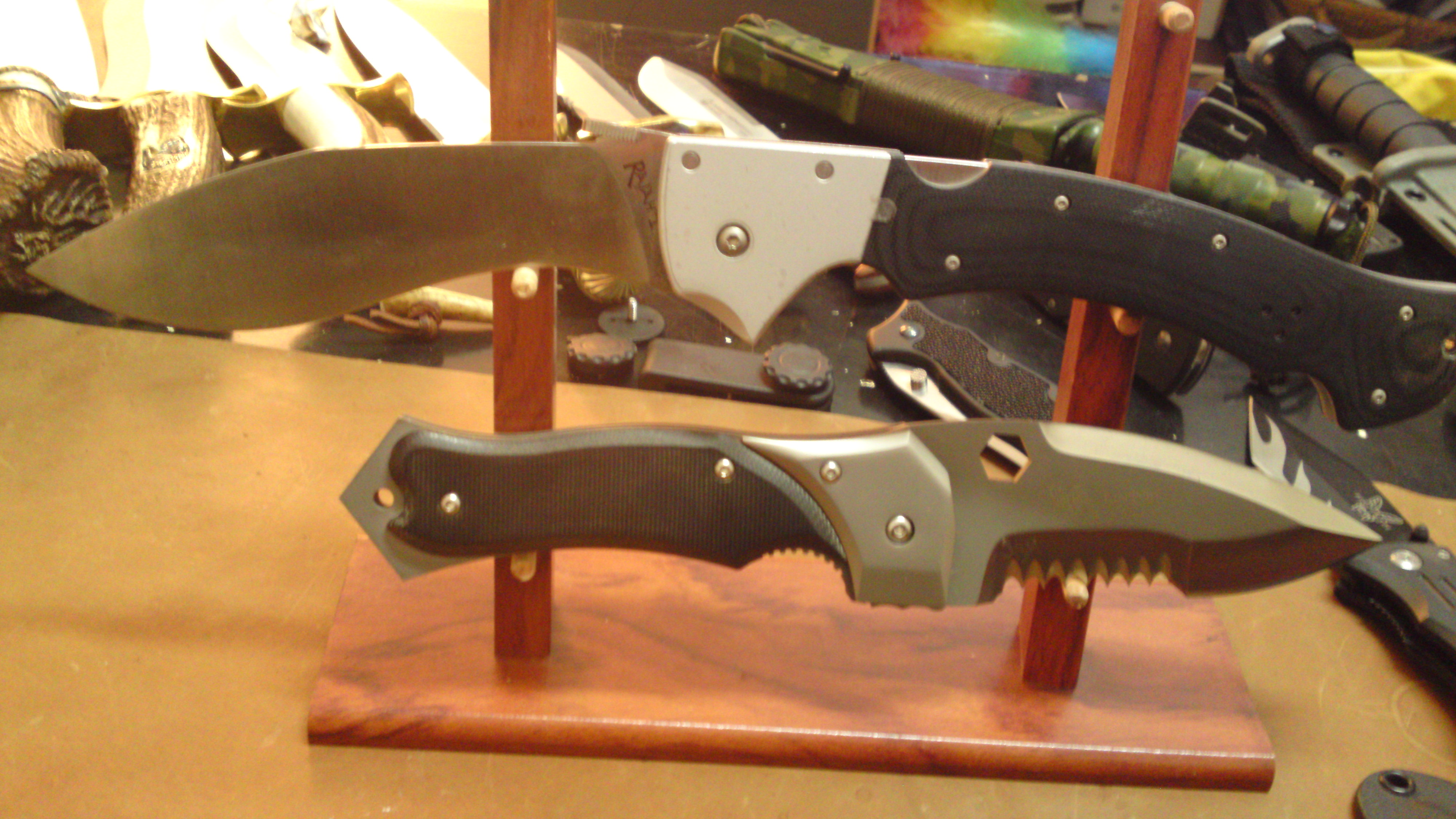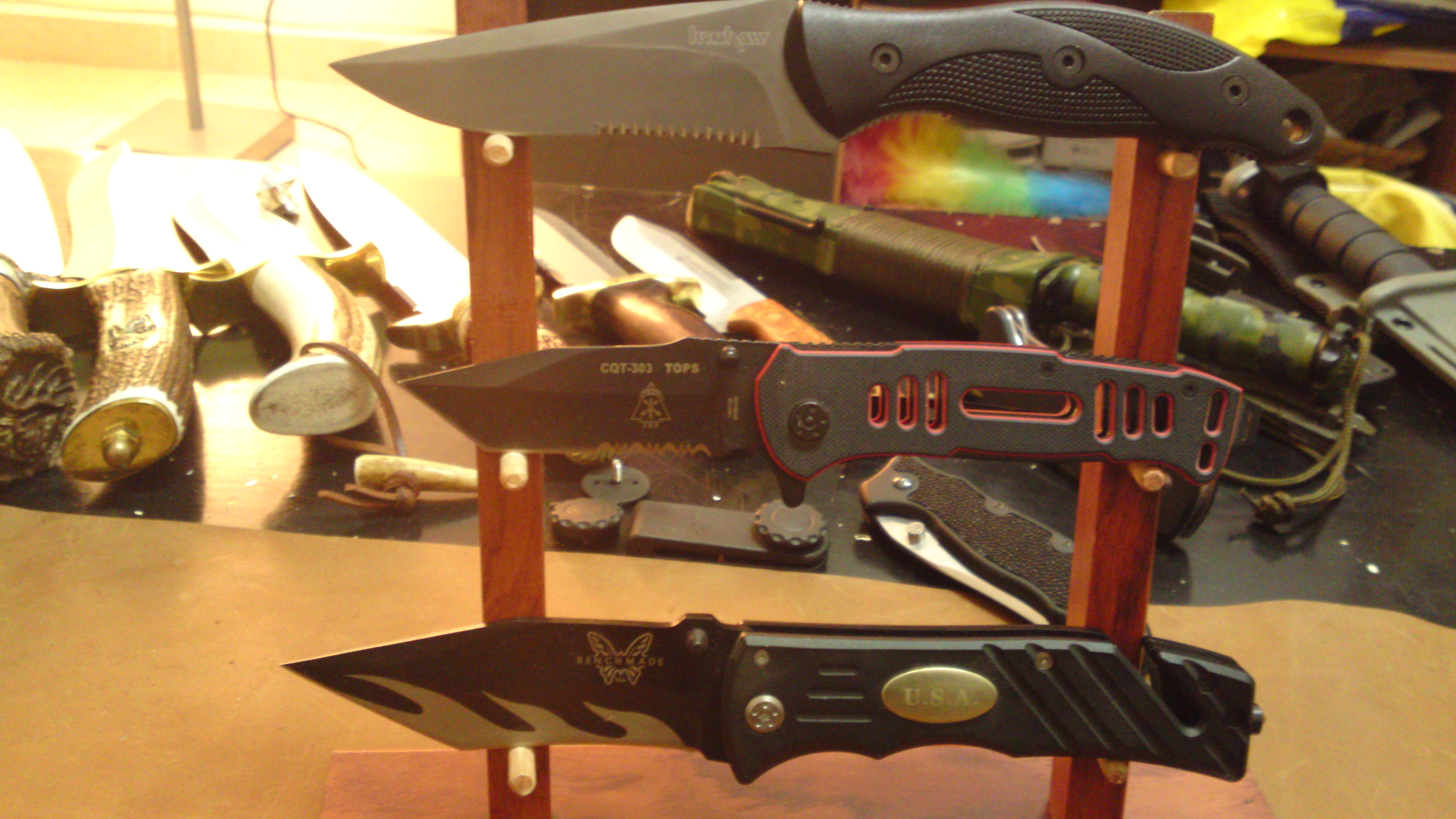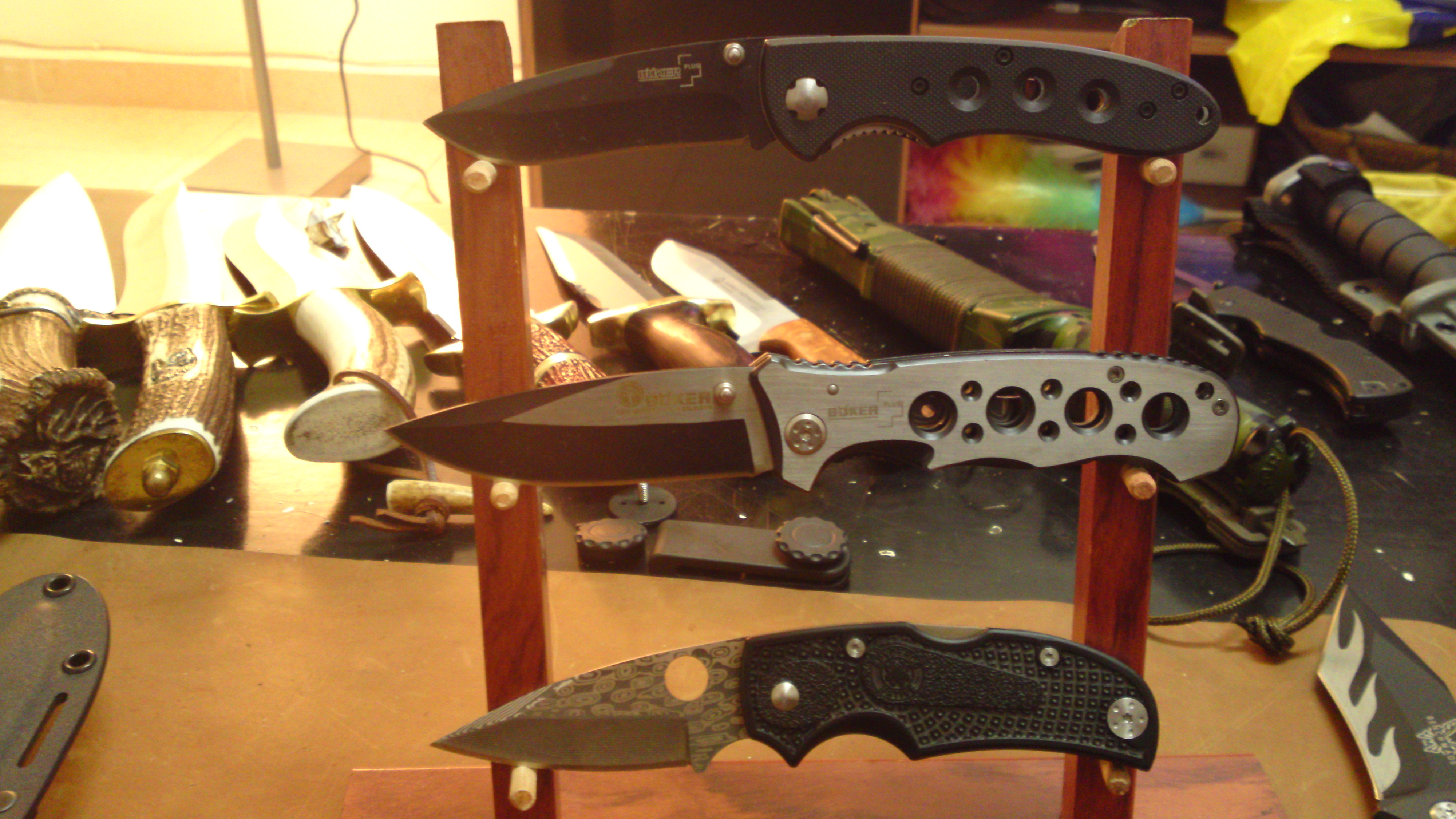 плюс 2 складника boker,1 spyderco native с травленым рисунком(по моему китайский)-продан, 1 складник TOPS и один складник benchmade(china) -- по 100шах за каждый
