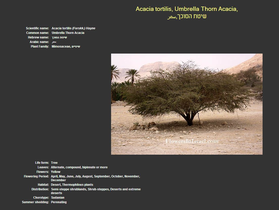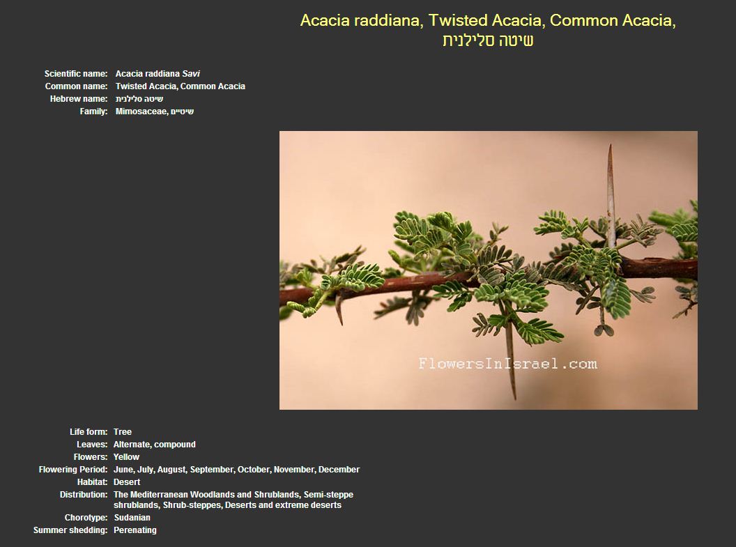 DmitriZ писал(а):Растет в пустыне Арава всё-таки акация, вот нарыл, очень похоже что именно с этого дерева я и сразал кусок