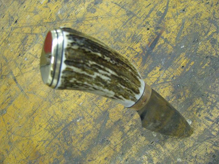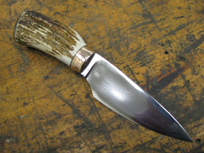 Х12МФ,рог лося,фибра,медно-латунное мокуме,латунь.