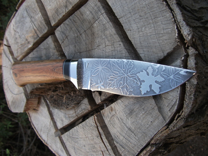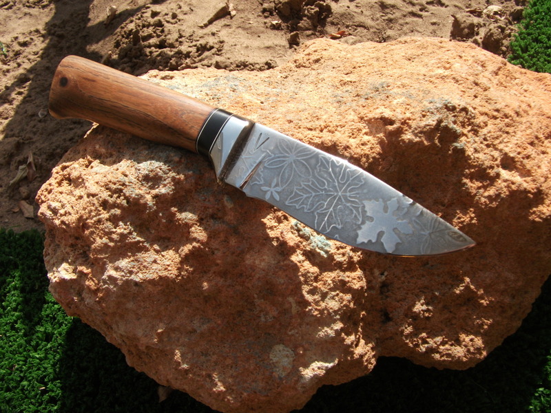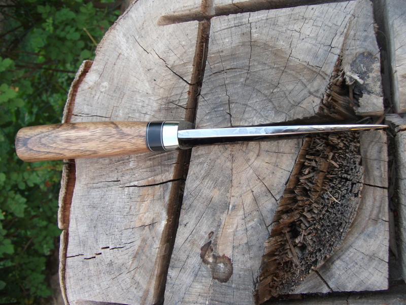 Клинок- сталь О1 твердость 60-61еденица по РК и 55-57 по обуху