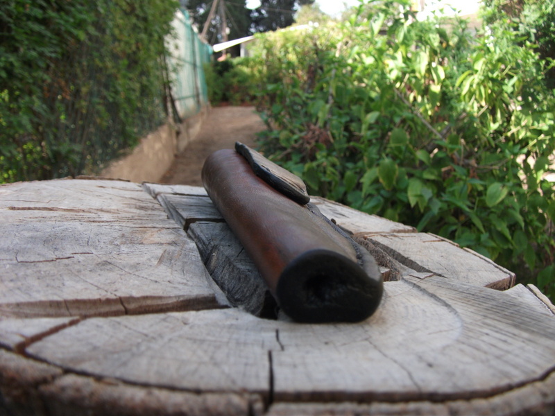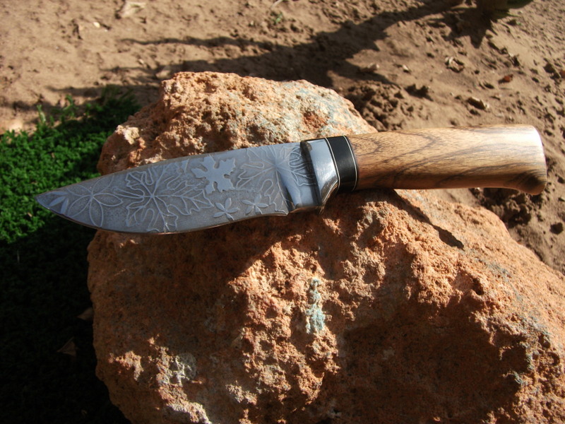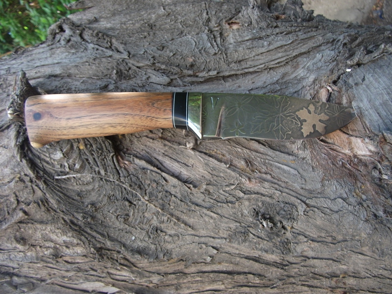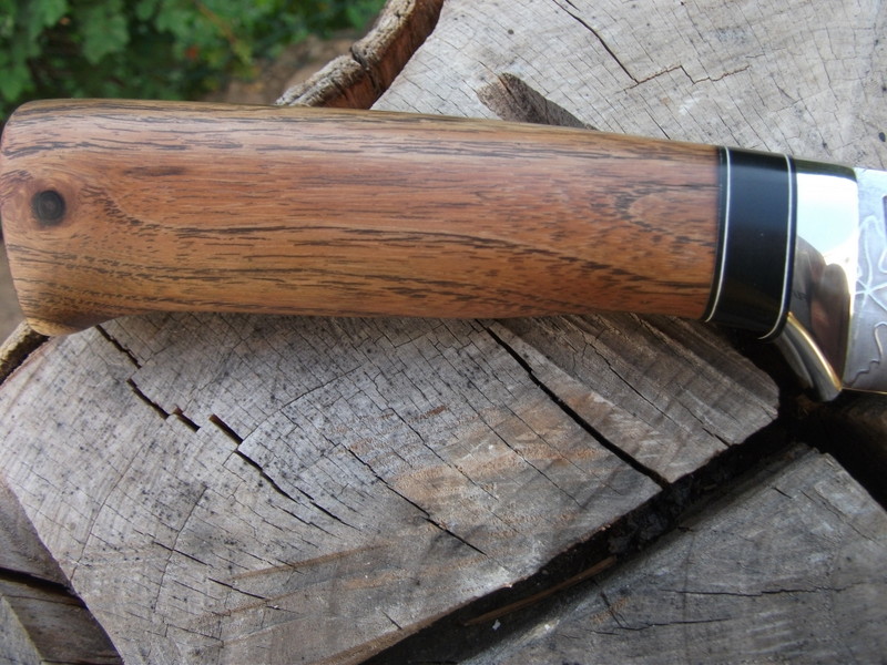 Рукоядь- ветка персика, черный пластик, фибра, гарда- нерж. сталь.
