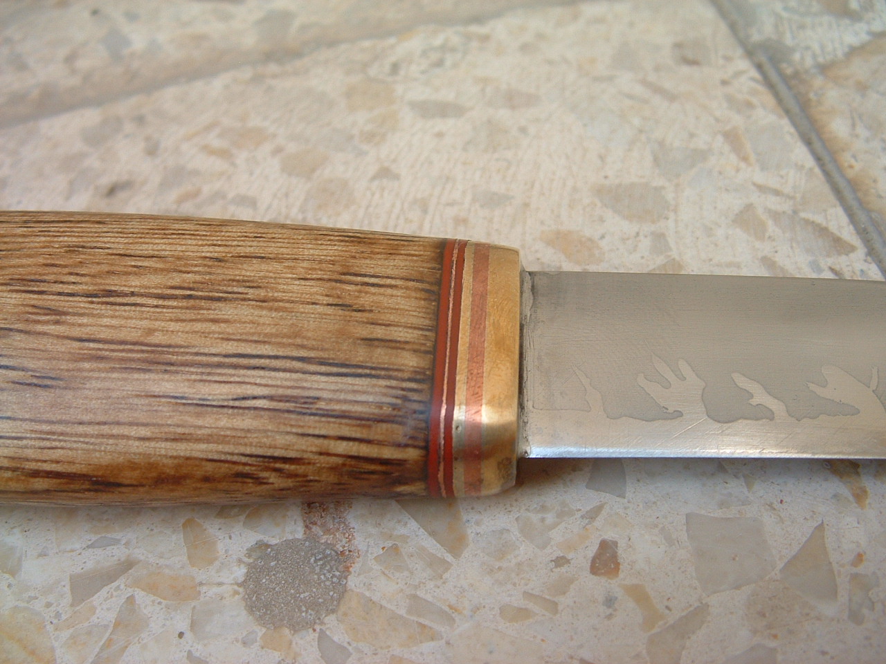 Спасибо. Рукоядь , насколько уродлива, на столько удобна. Паять нужно окуратно.Желательно очень.Просто сопли конкретно портят вид.Мне надо было просто облудидь клин и больстер и все . зазора практически не было. Свет чуть просвечивал в одном месте около 0,1 мм длиной 1мм ,но я решил сделать его,надежно  и запаял изнутри тоже. клин зажат в тисках остреем вниз, не думал что олово с серебром НАСТОЛЬКО текучее, вода не просочилась бы ведь переднюю часть больстера напрессововал, а потом снял и собирал пакет ,,мокуме,, на серебряный припой.А сам больстер сажал на олово с серебром.Паять не любил до последнего времени, но Полковник с Гнуса прислал флюсы и теперь я фанатею, облудил клин из углеродки, не ржавеет и режет. Олово пищевое. Не смейтесь...