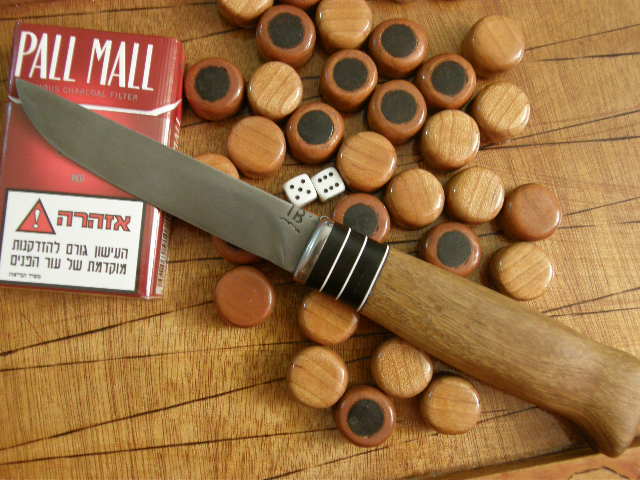 Ну и по форме ножа и рукояти, просится что то более навороченное, что ли. Булат всё таки. Или я не прав?