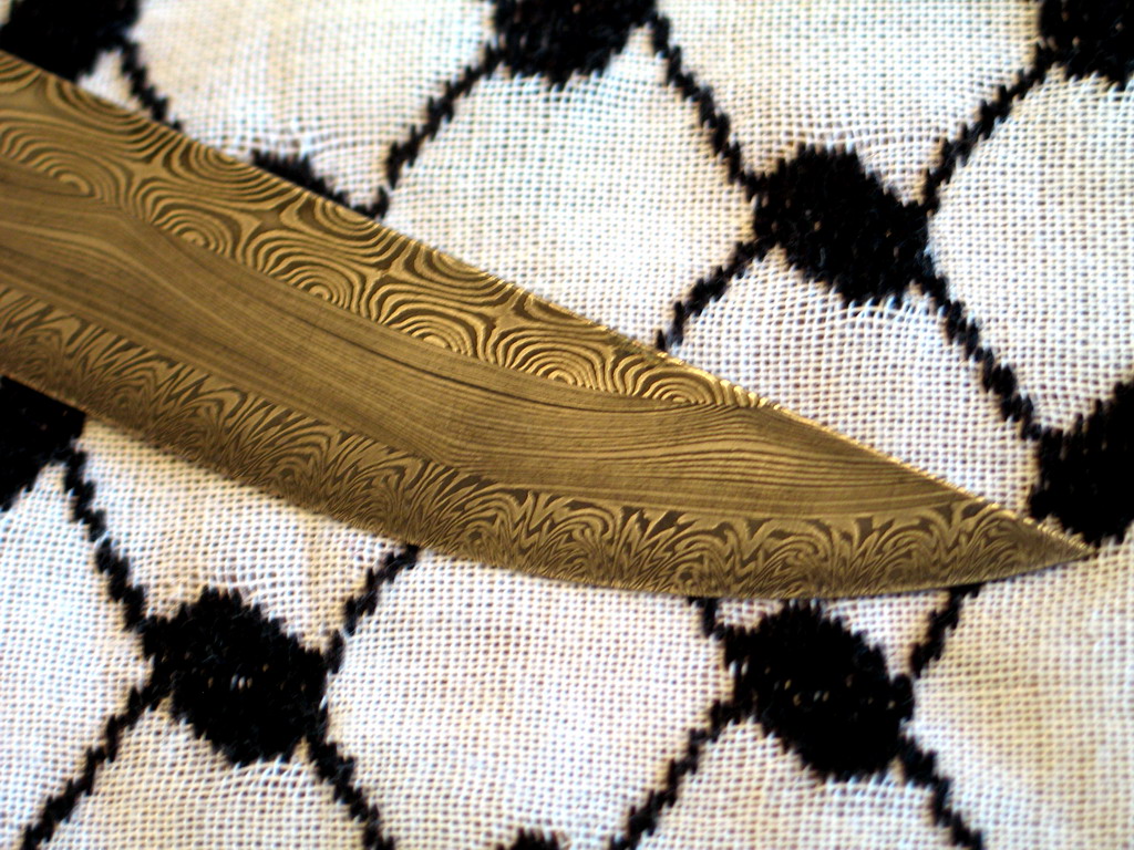 за эту косыночку Петя в Старом Городе с двоюродным бешено торговался и вырвал таки скидку в 20 шекелей :lol: а по рисунку дамаска поясню, это самый край пакета, дальше уже на хвостовик оттянуто, там было тупье но я его ликвидировал...