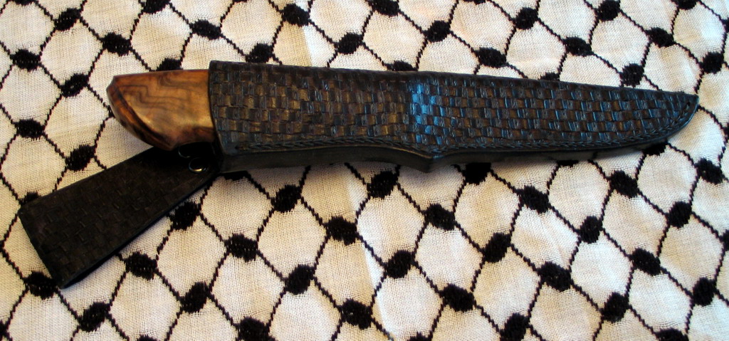 Тиснение на ножнах этой "хреновиной" интереснее смотрится по диагонали и не по всей площади .Но это сугубо мое мнение .