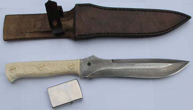Клинок - турецкий дамаск. рукоять - моржовый клык