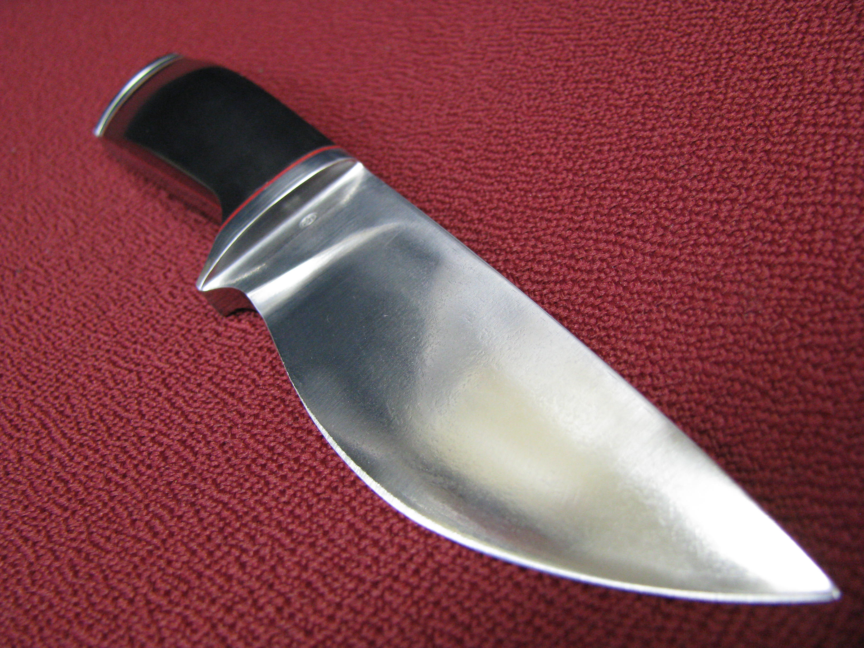 После закалки нож обработан кислотой,проявился булатный рисунок.