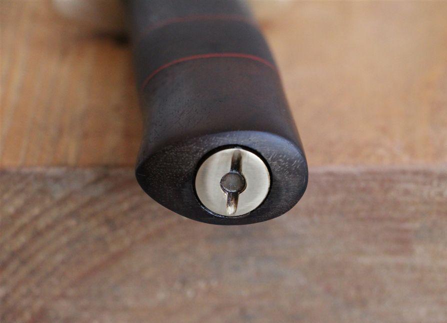 Нож только что вытащил из вакуумной установки , поэтому рукоять такая темная , а из тыльника прет масло. Следующие съемки будут на пикнике : рубка дров , гвоздей , медведей ...