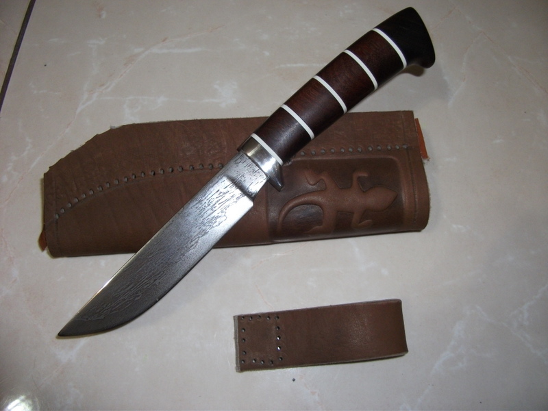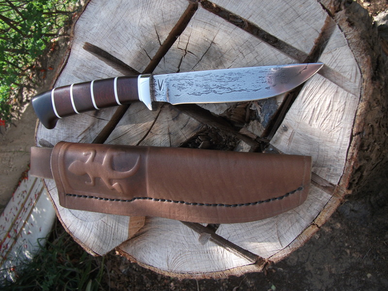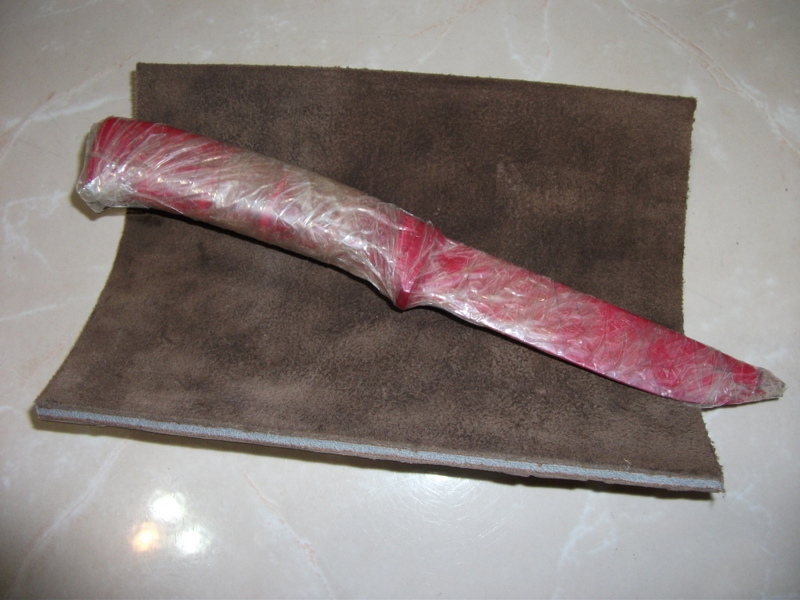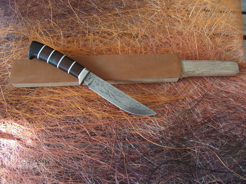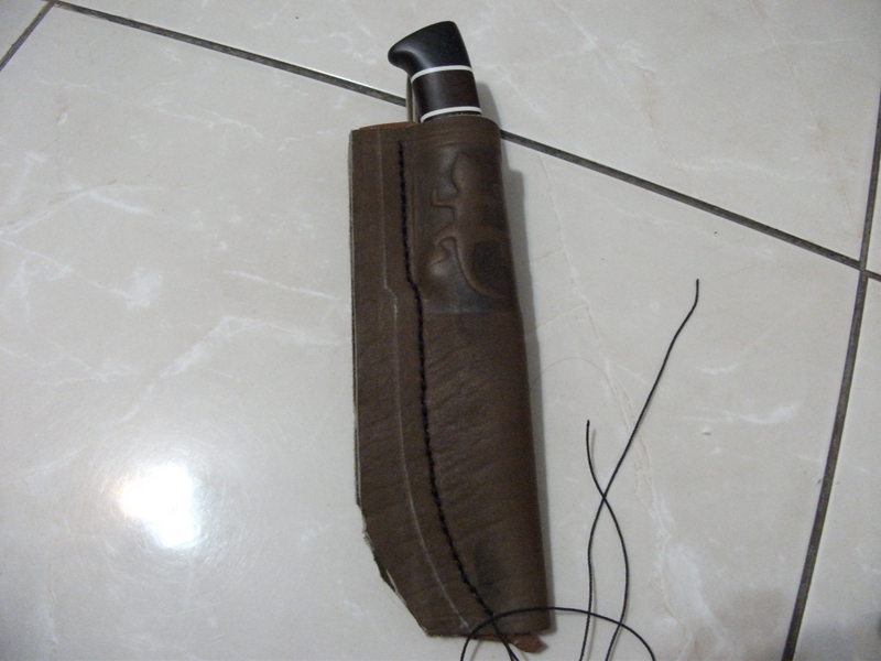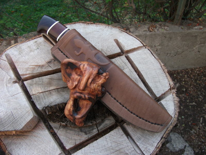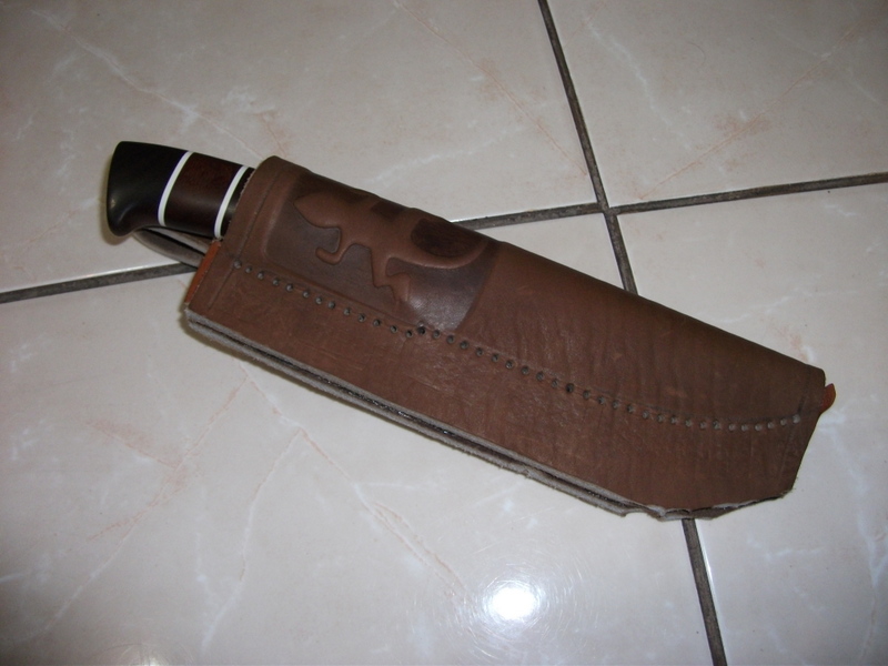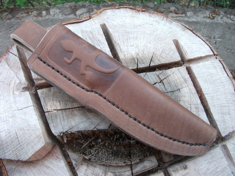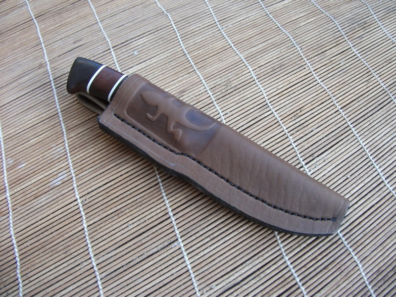 Ножны- кожа 5мм коричневого цвета, тиснение.