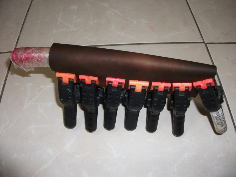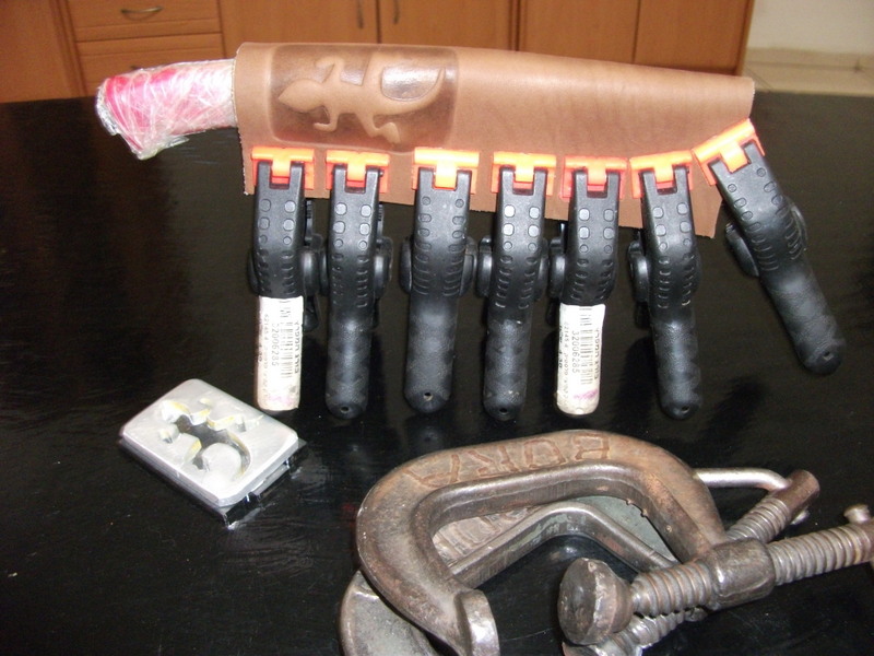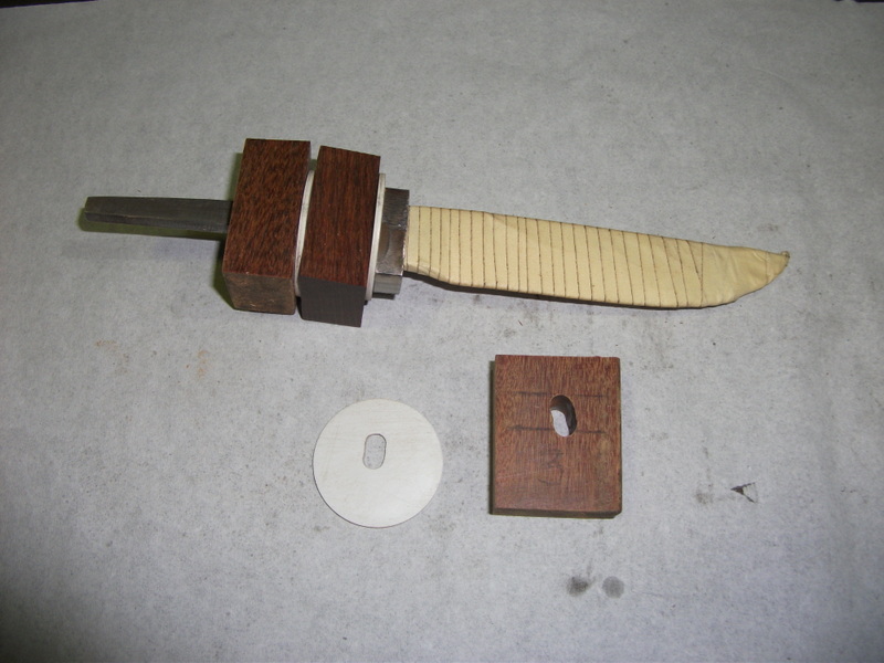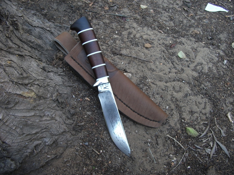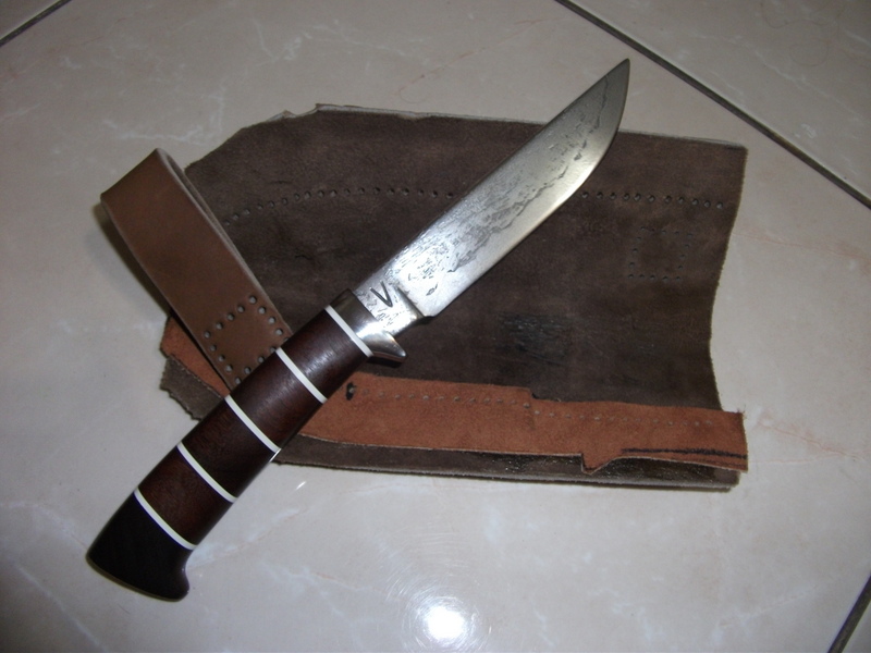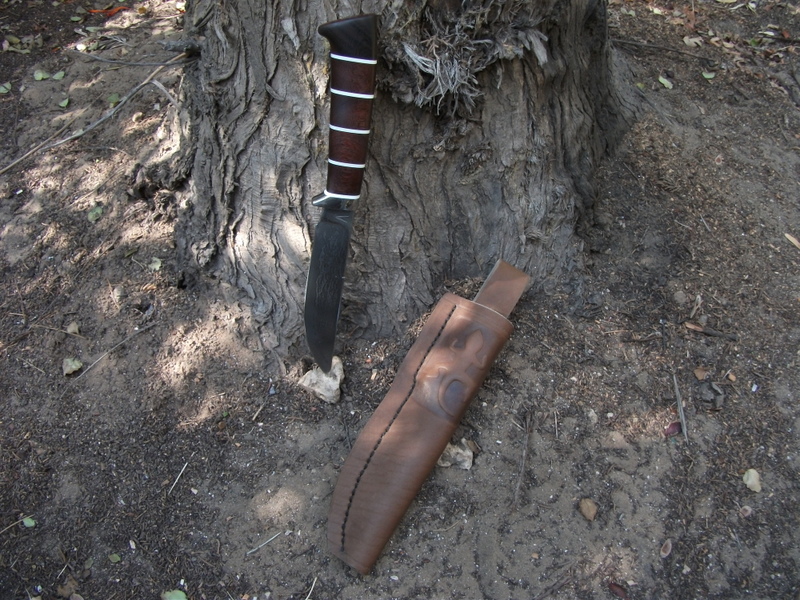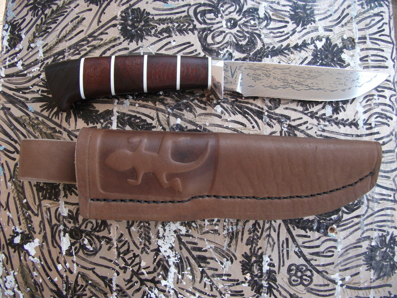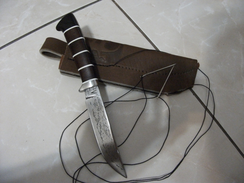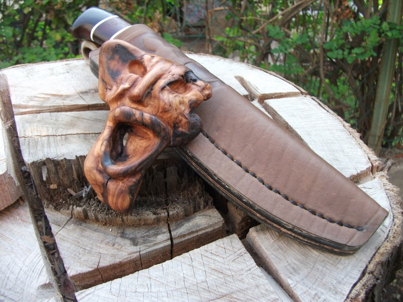 Ножны- кожа 5мм коричневого цвета, тиснение.