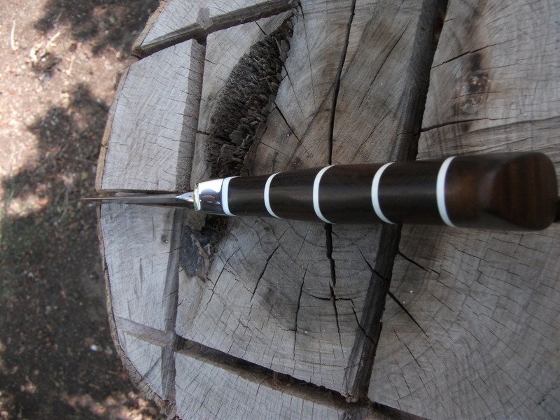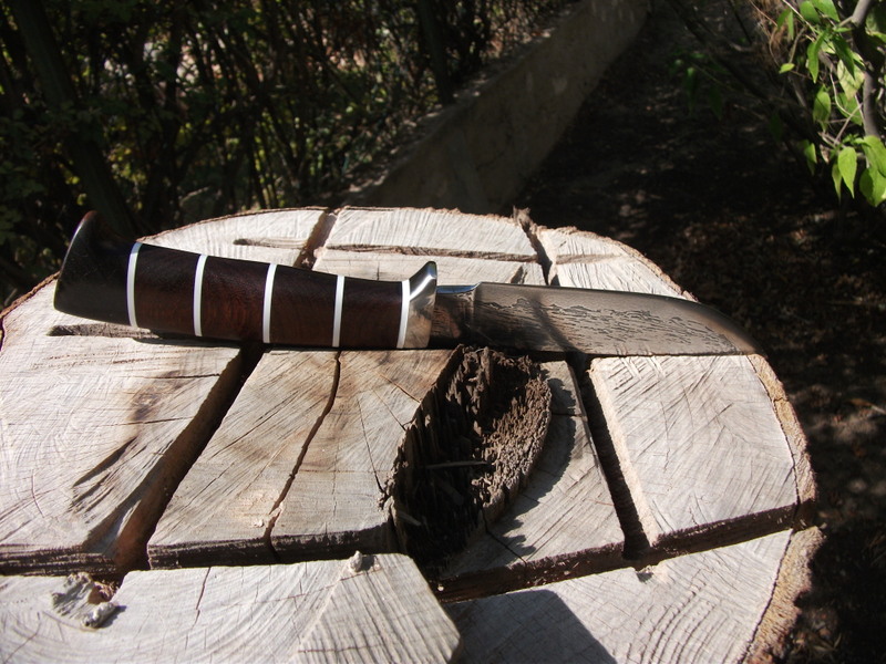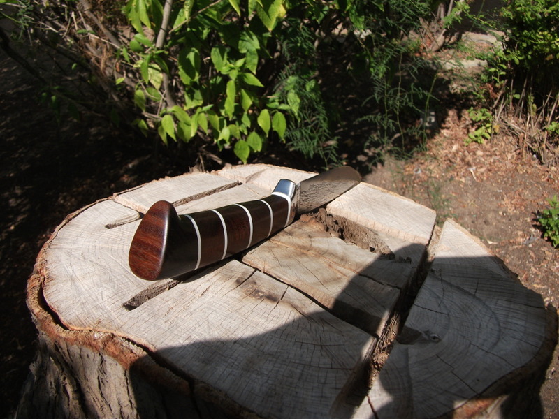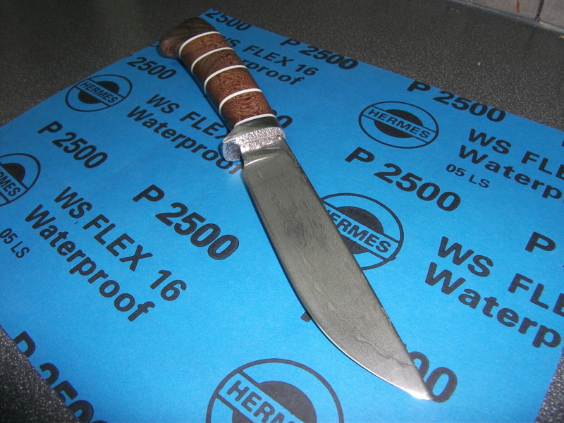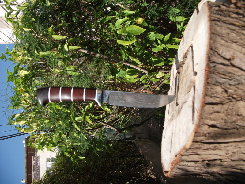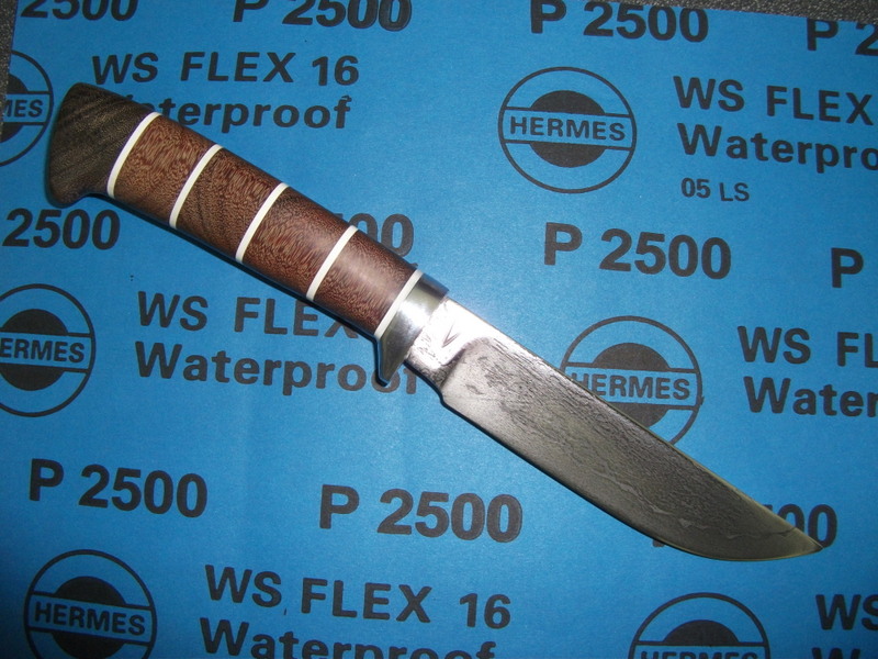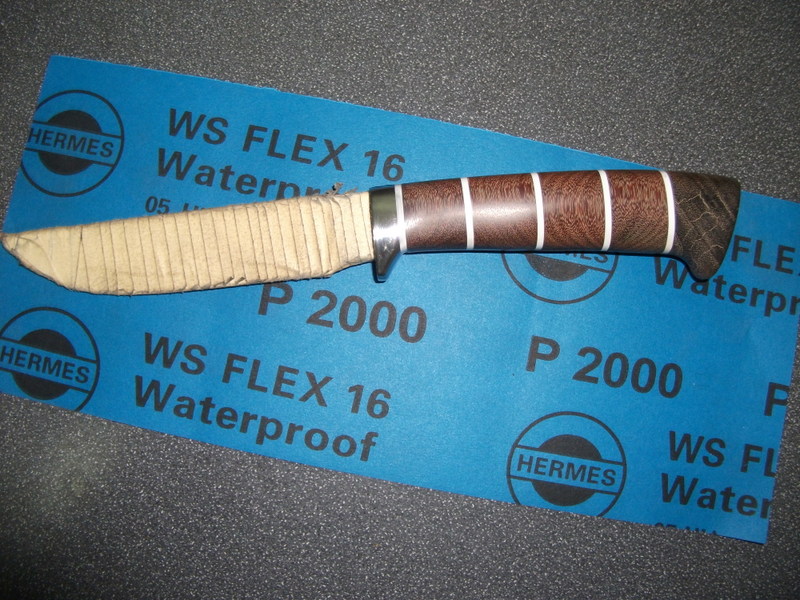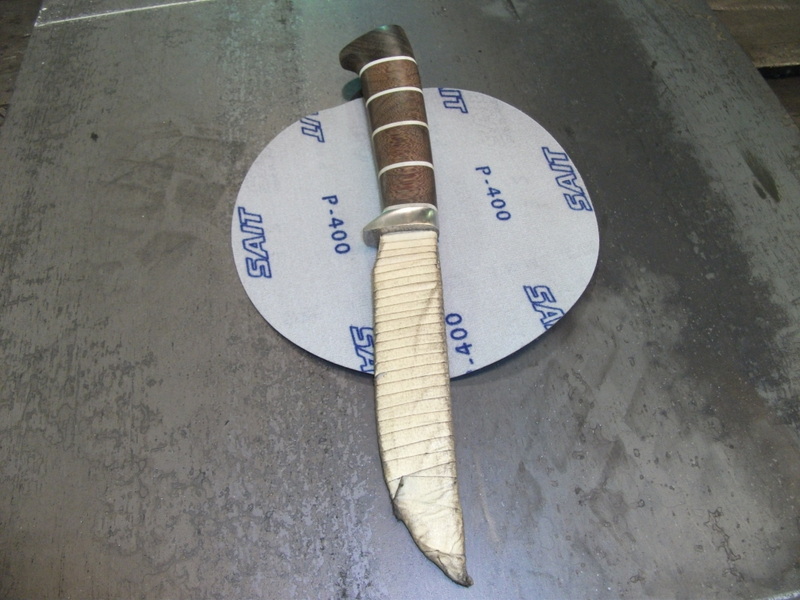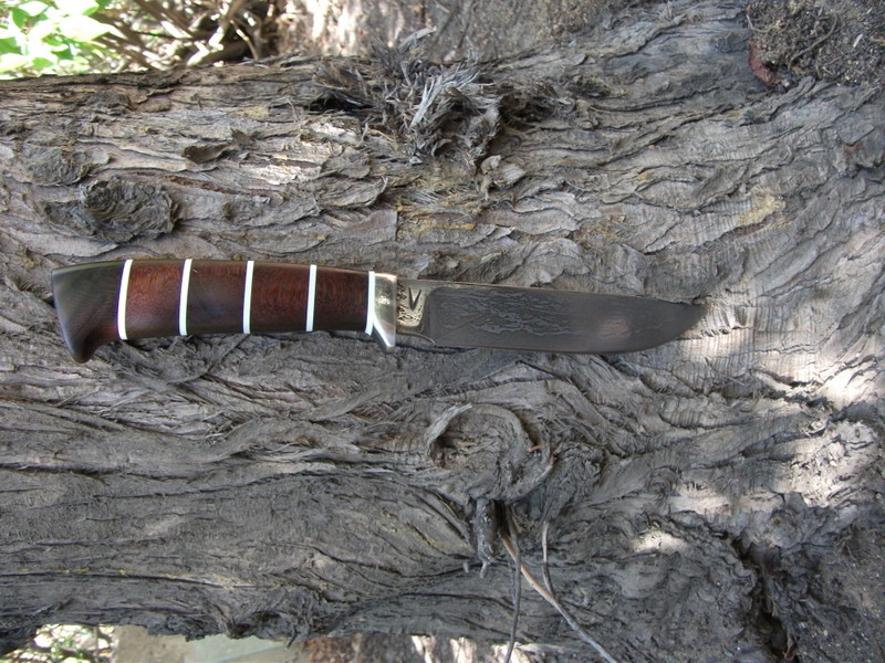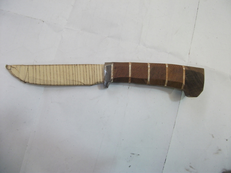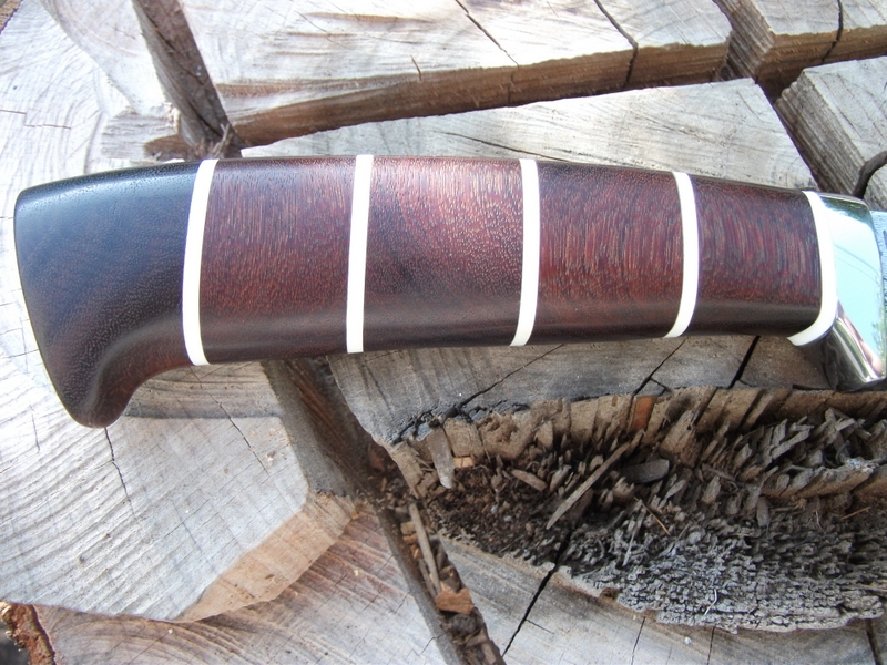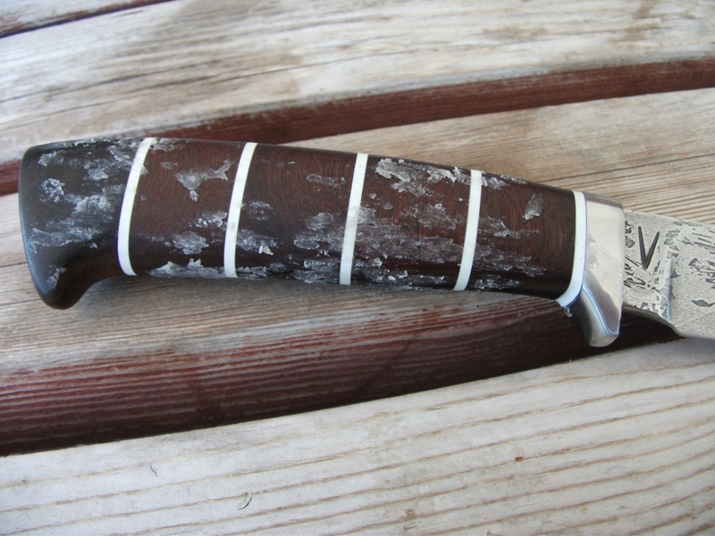 Рукоять- дерево Балут, проставки с белого пластика, пропитка маслом, полировка с воском