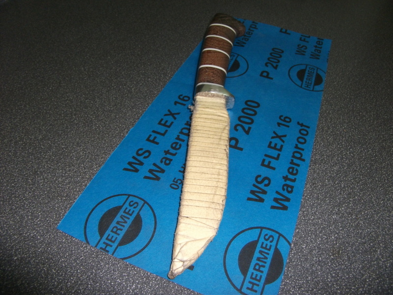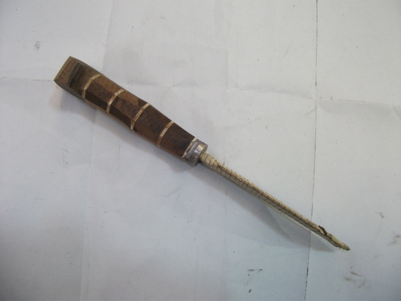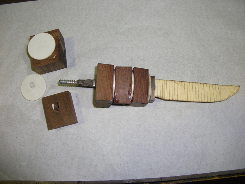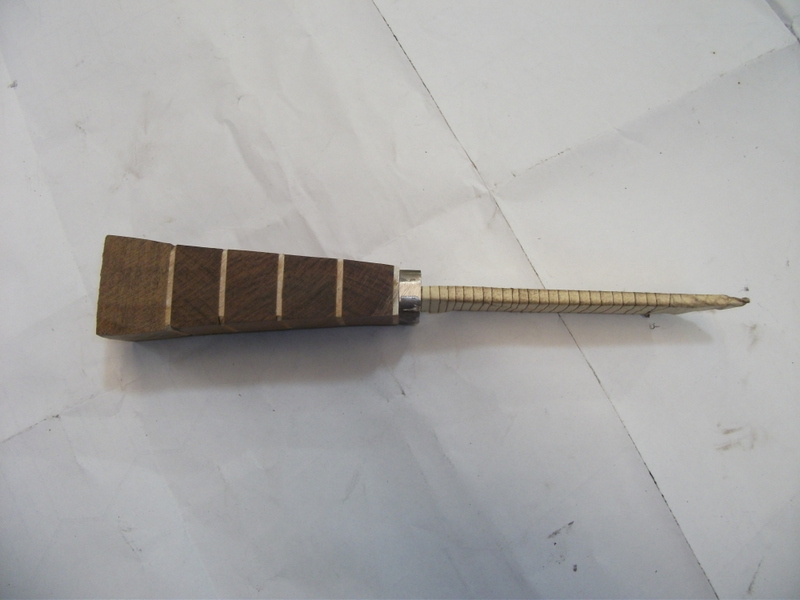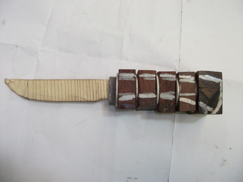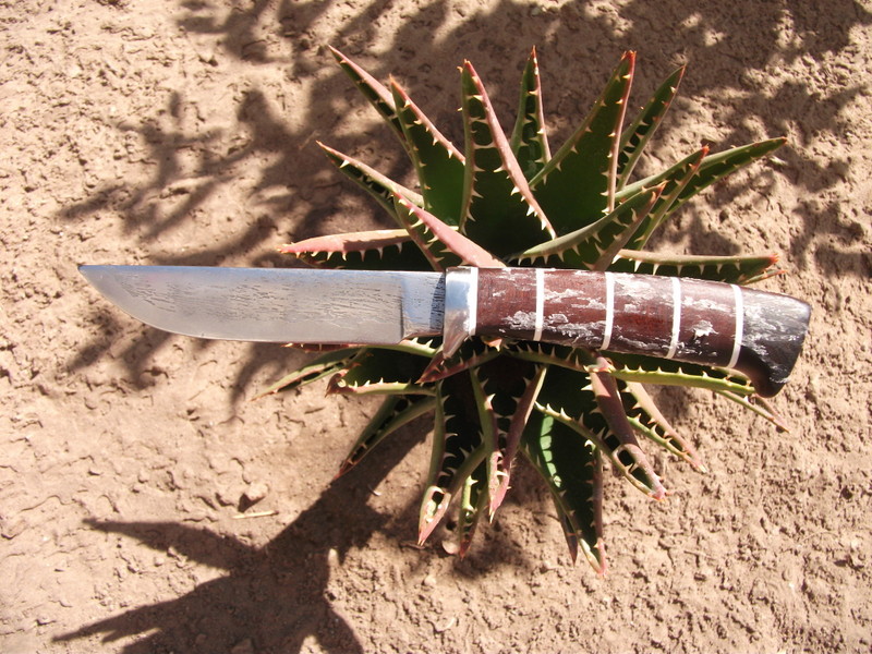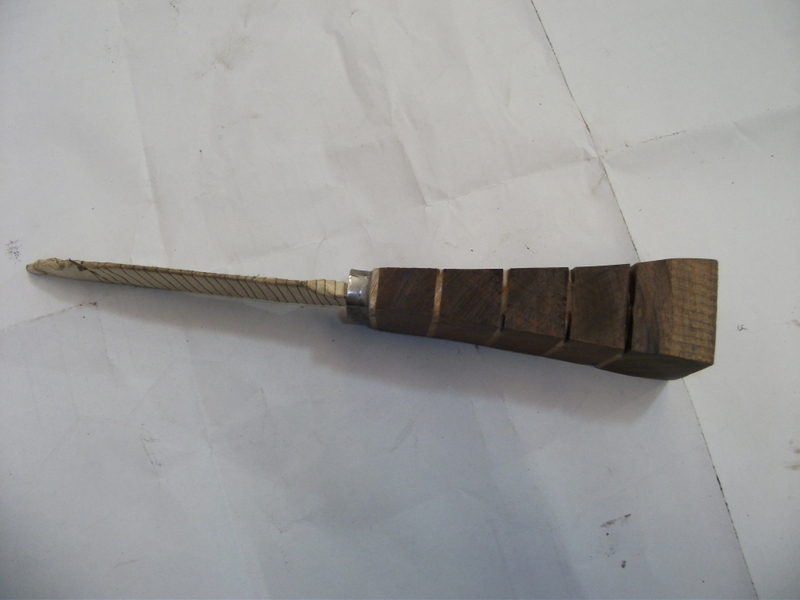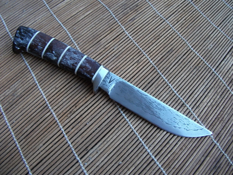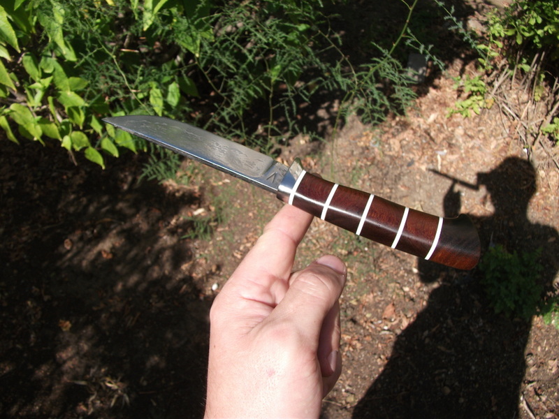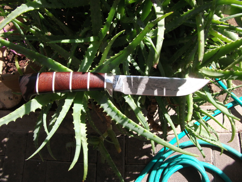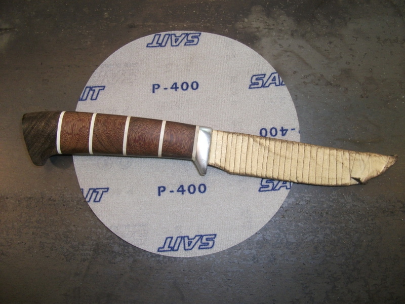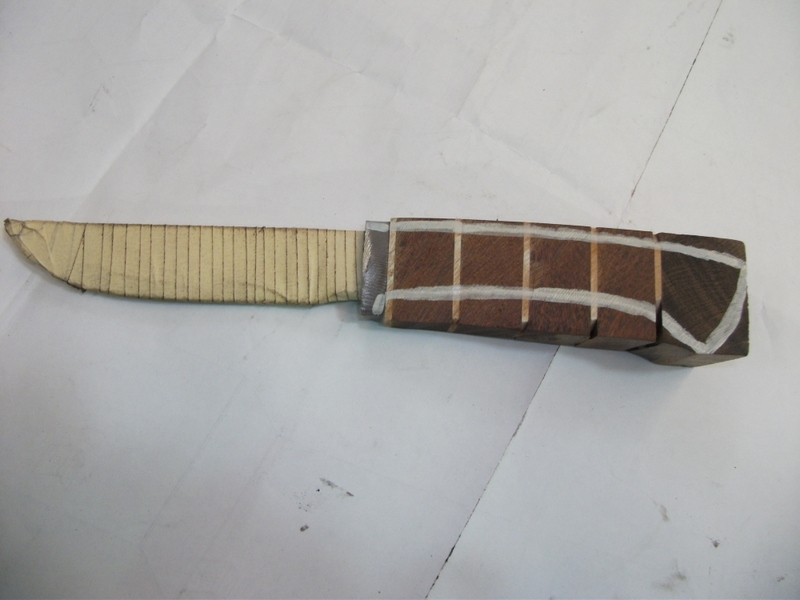 Рукоять- дерево Балут, проставки с белого пластика, пропитка маслом, полировка с воском