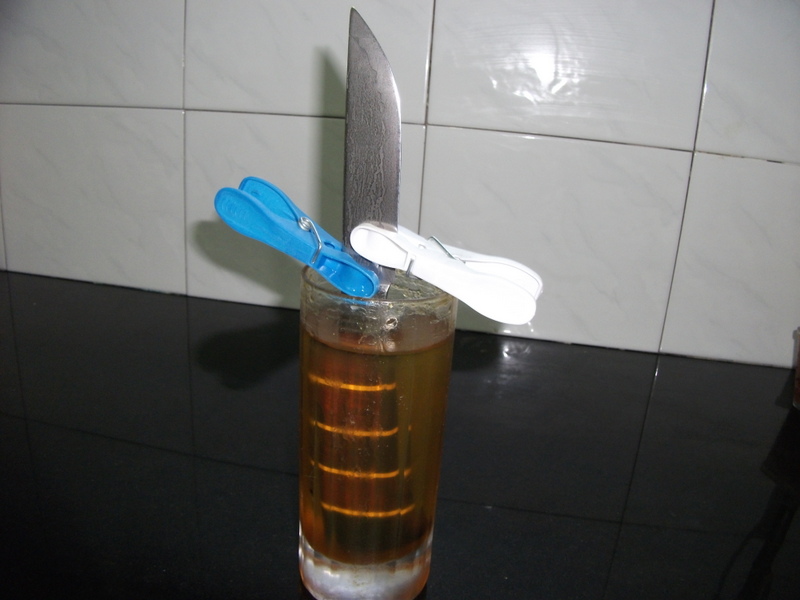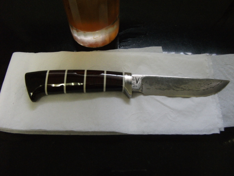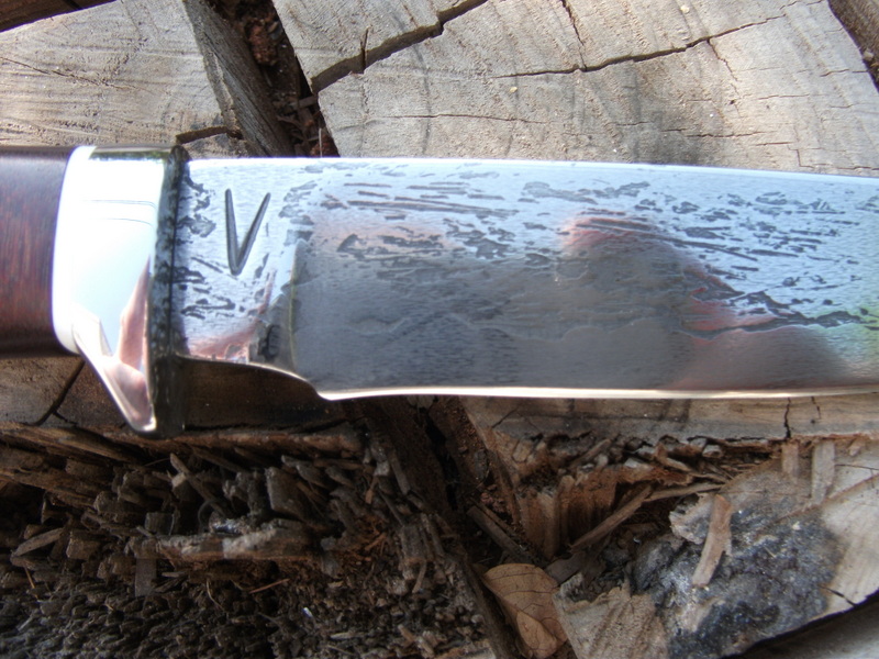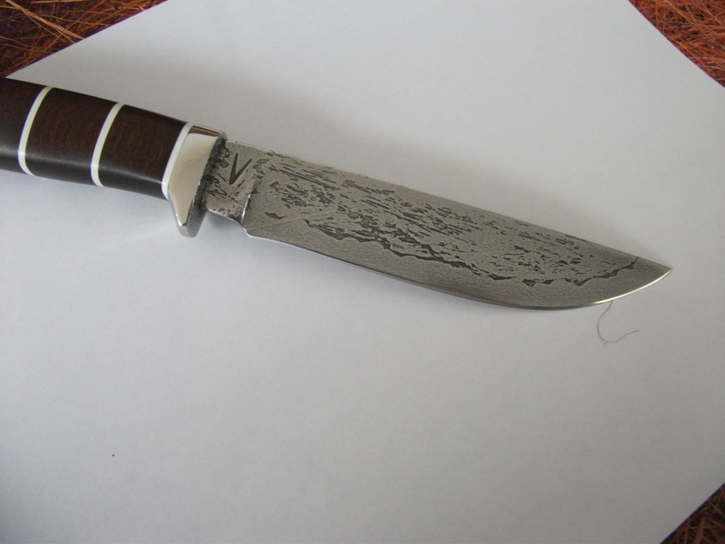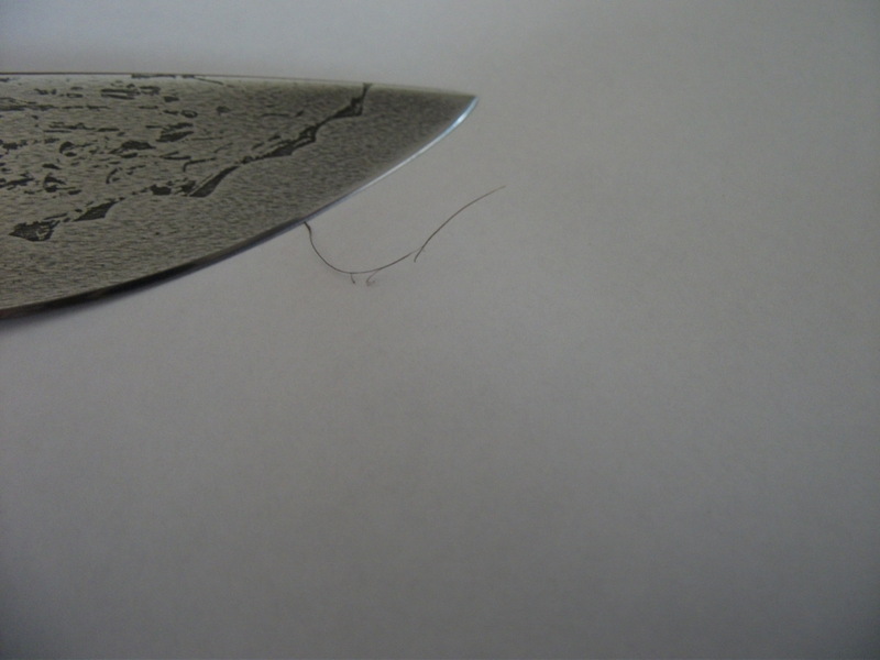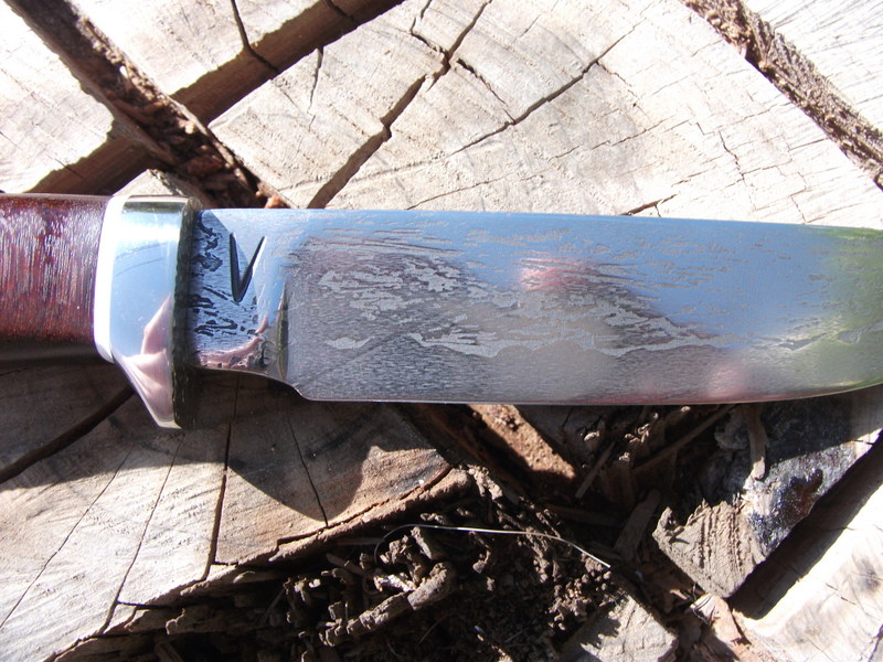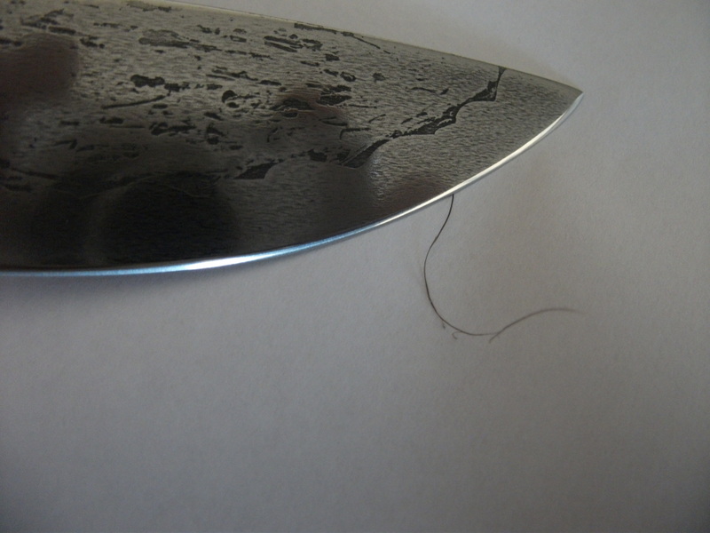 Клинок заточен до строгания волоса, травление произвольное в трис слоя