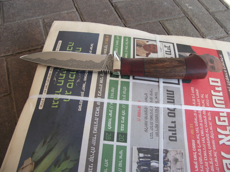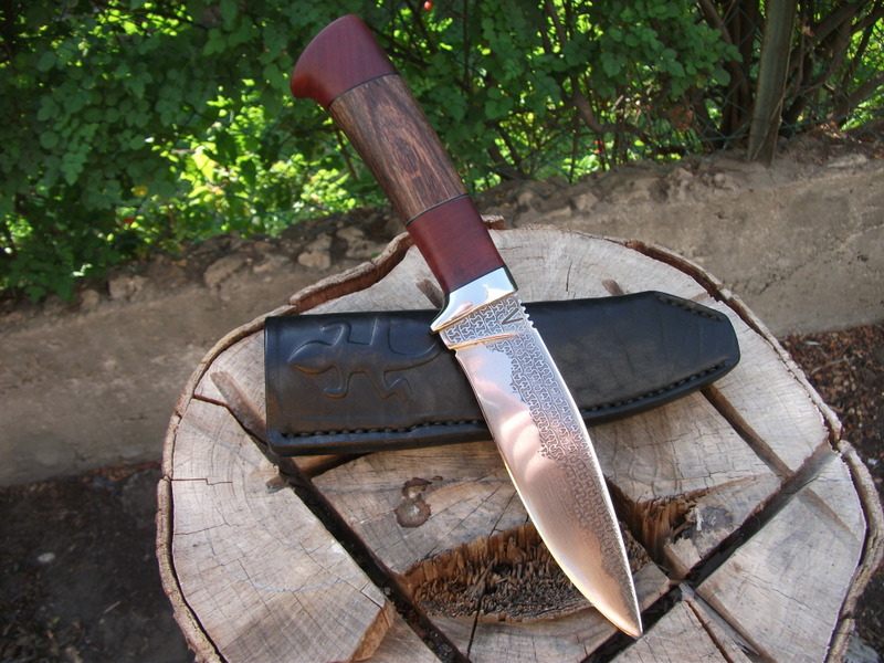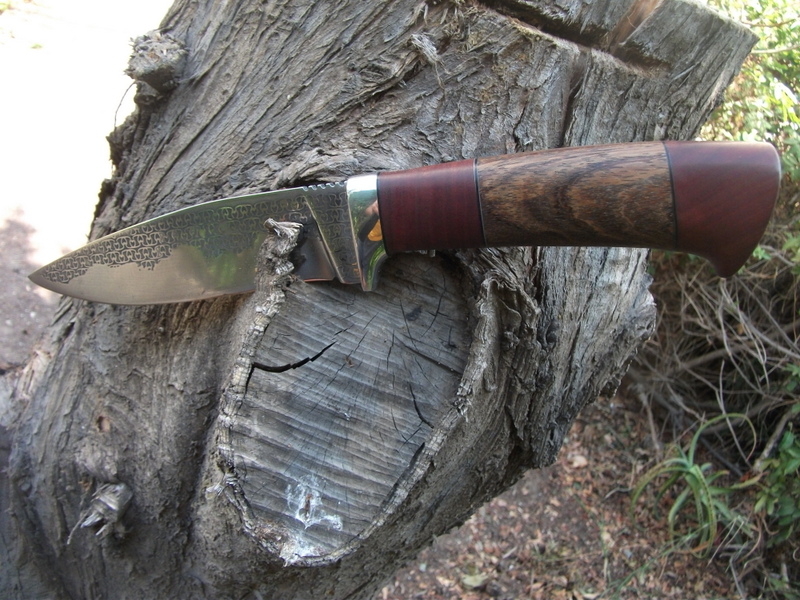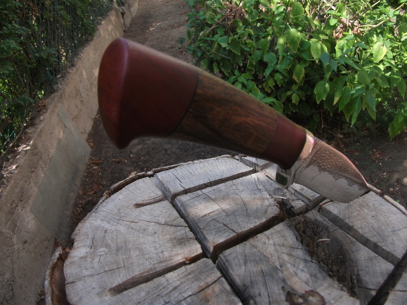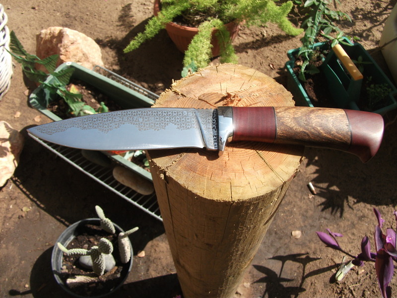 Рукоять- евкалипт, зебрано, евкалипт, гарда- нерж.сталь, проставки- вулканизированая фибра черного цвта