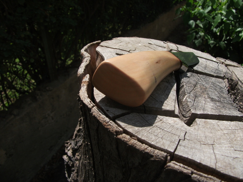 Рукоять- 122мм. гарда неж. сталь. фибра красного и черного цвета и кусок ребины