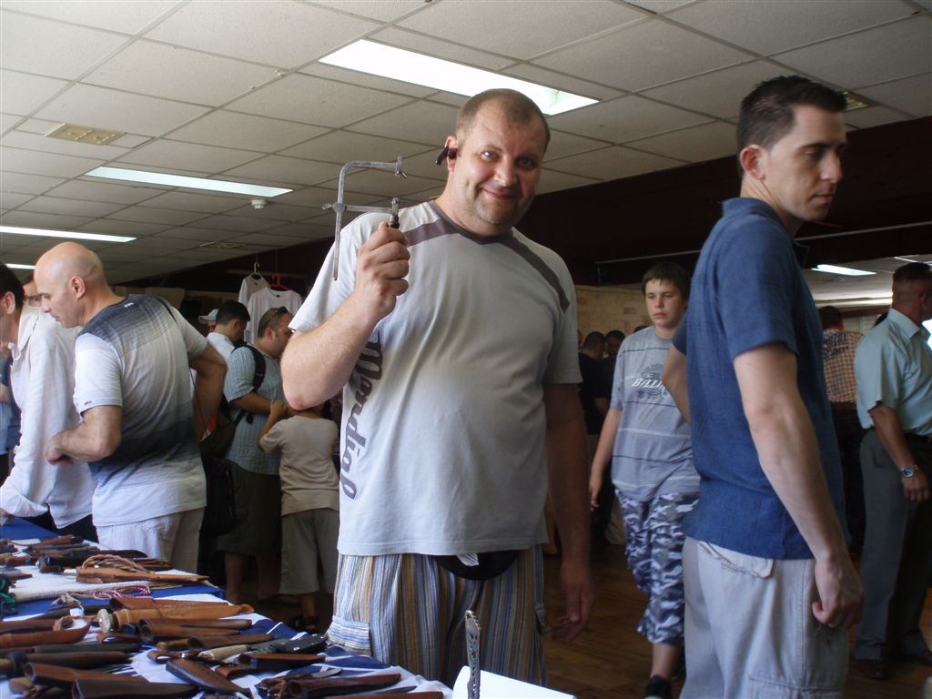 Был рад познакомиться со многими с кем был знаком заочно - Рома(Дингер), Дима(Песель), Михаил Фишман и многими другими представителями ножевой обЧественности и был так же рад увидеть тех с кем уже был знаком. Наконец то вживую увидал работы Руди Цирлина. Впечатляет. Так же впечатлили работы его сына. В 14 лет делать такие ножи...Просто молодец!!! Так же понравились ножи товарища? гражданина? господина? Sheg-а. В принципе ещё много чего понравилось, но всего и не упомнишь.