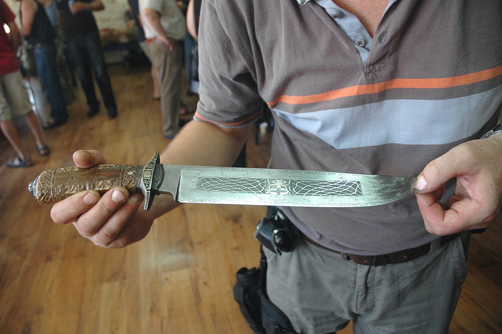 А перед этим собрались мастеровые где-то в глубинке да давай думу думать, типа, а не вдарить ли нам по народному рукоделию? В смысле – ножеделанию. И вдарили. Теремок такой неплохой нашли да в аренду его сняли. Правда, жарковато было в тех хоромах, и жарковато не по-деццки. Но мужики не запечалились, начали собираться. Заодно причесались, побрились, рубашки новые надели. Девицы-супружницы маникюру навели поболе, да за мужьями увязались, типа, знаем мы ваши выставки.