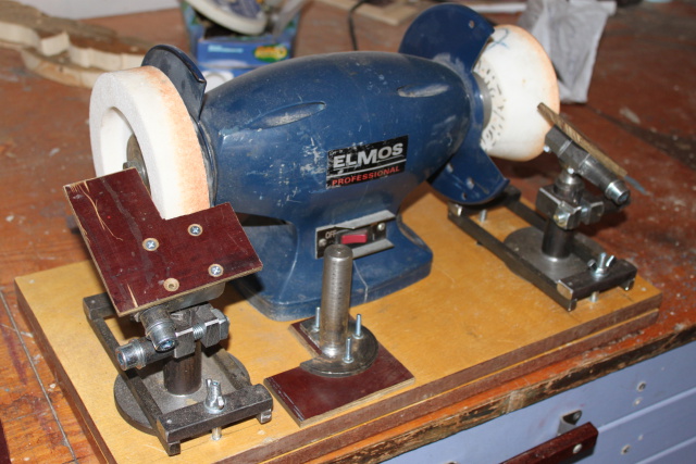 не успел за выходные сделать столик и подключить частотник, выложу пока приспособление для обработки рукоятей ножей. Из фото думаю всё понятно, крепиться к столу, нож зажимаеться за клинок, можно крутить во всех направлениях.