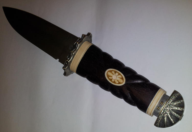 Классный нож!!Краиво ,мощно,навороченно!Ну и пара вопросов-как делается "покоцанность" на гарде и тыльнике.Прошу разрешения взять идею , использованную Вами в Old Jerusalem- фактуру стены.