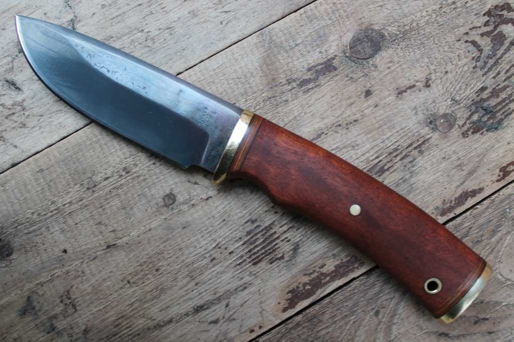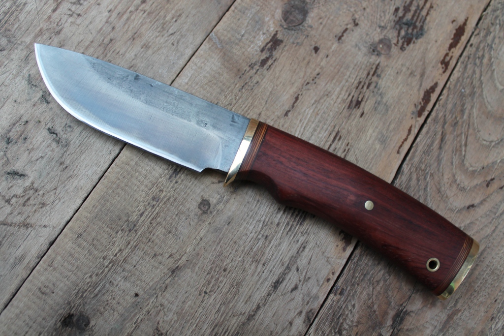 Выполнил заказ ,выставил на Ганзе,подвергся критике на счёт темлячного отверстия.Сам взял ножи и проверил, шнурок мешает как ни крути ,хоть внизу дырка хоть выше ,по середине рукояти.Чего они хотят?А alex-wolf предупредил ,что ножи мои -ХО и в "барахолку" их ставить не следует,чёта я очкую там выставляться.Ножи- кованный быстрорез 110-34-4,5мм сведины до 0,5-0,6мм разные красные деревяхи,бронза,дельта длинна 123мм