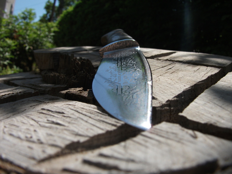Клинок сведен почти од обуха, сведение гдето в 0,3- 0,4мм, по всему обуху фальш лезвие в 0,5мм