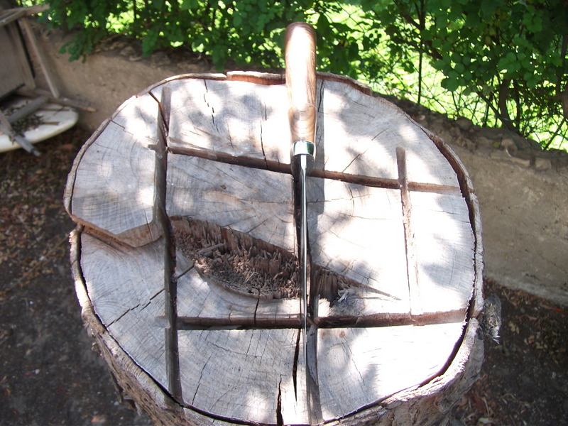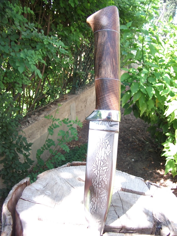 Рукоядь-дуб поперечного среза и зебрано продольного среза, пропитана маслом. Длинна- 120мм
