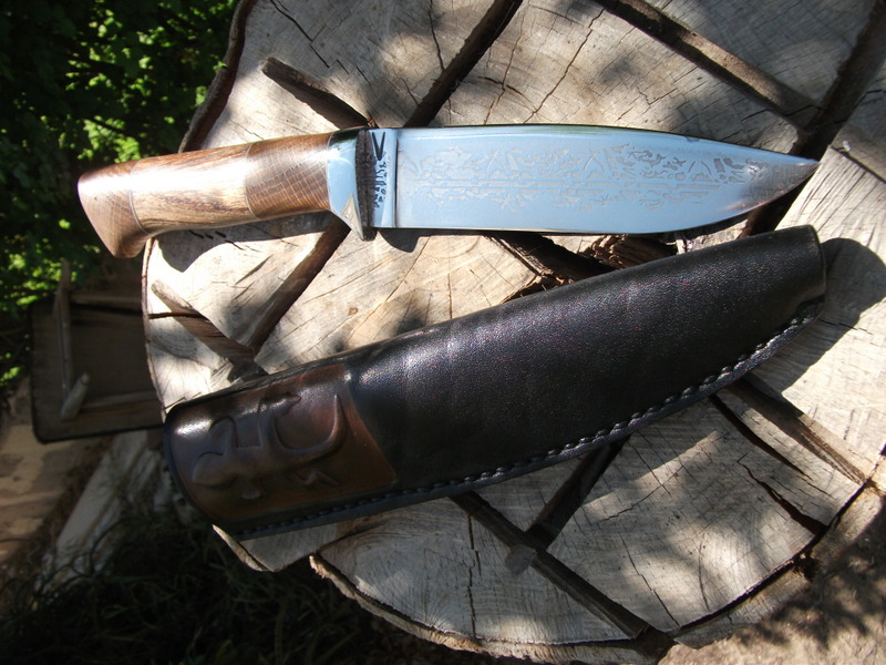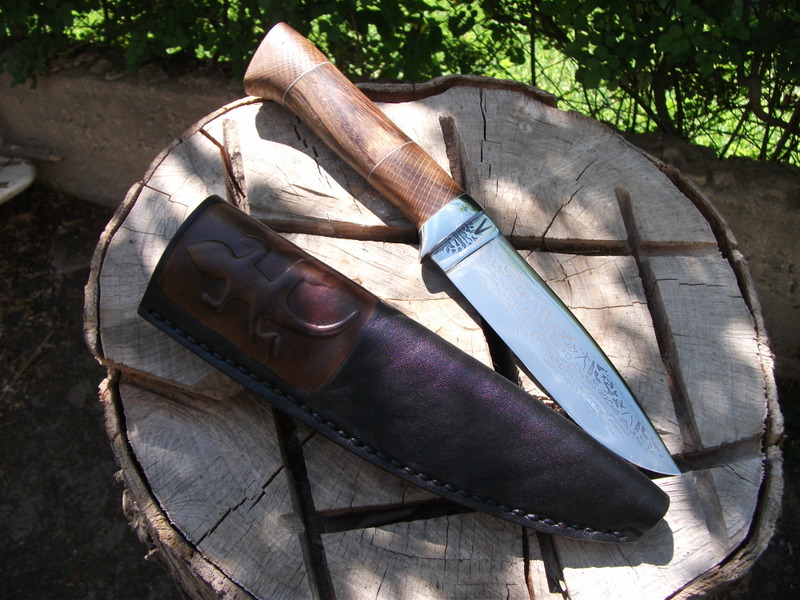 Ножны- кожа 5мм, черного цвета+ тиснение.