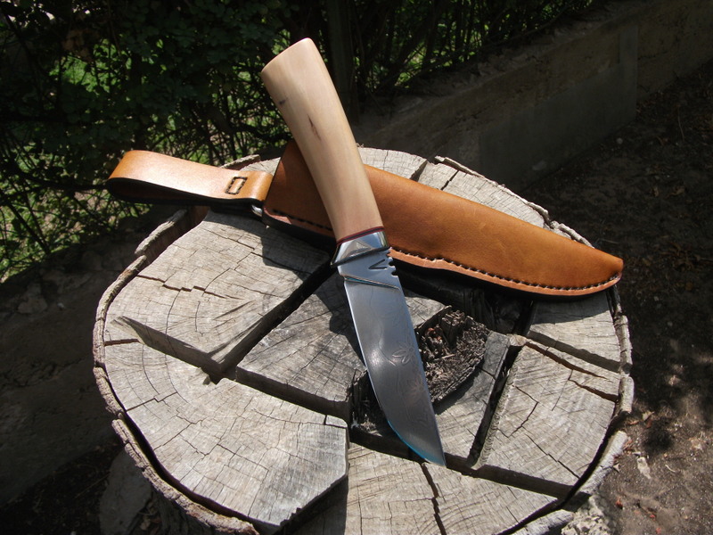 Рукоять- 122мм. гарда неж. сталь. фибра красного и черного цвета и кусок ребины
