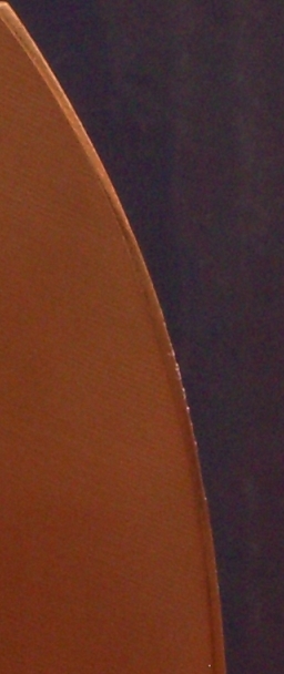 Нож был заточен на 30 градусов. В результате на "брюшке" замялась и ИМХО немного выкрошилась(под микроскопом не изучал) РК. образовав заусенец длиной ~1 сантиметер на правой стороне клинка. "Глубина" этой замятости ~1/10мм