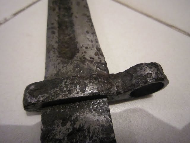 А еще этот штык скорей всего "воевал", его откопали под Калугой в районе, где велись бои во время ВОВ. Ржавый быыыыл......
