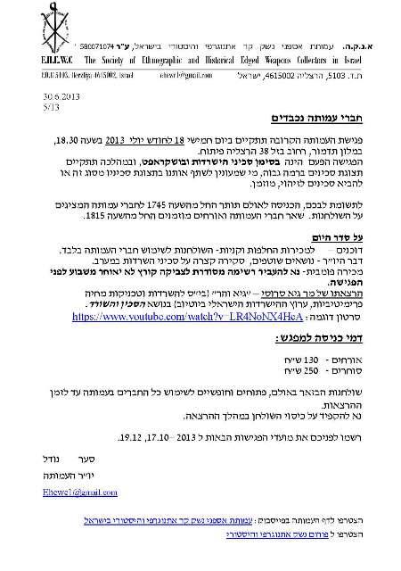 Встреча Израильских коллекционеров организации "א.נ.ק.ה." , четверг 18.07.13 , время 18:30