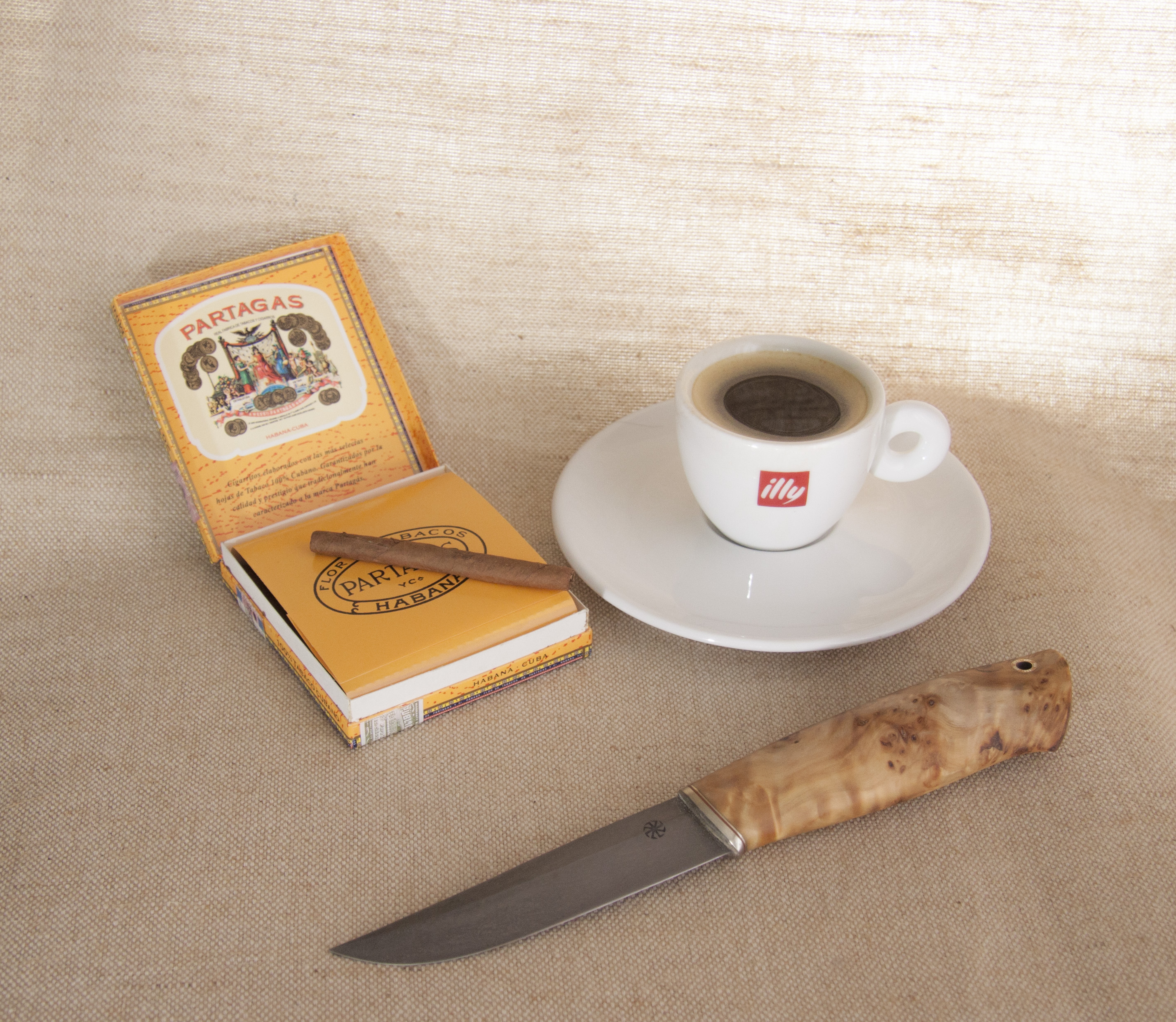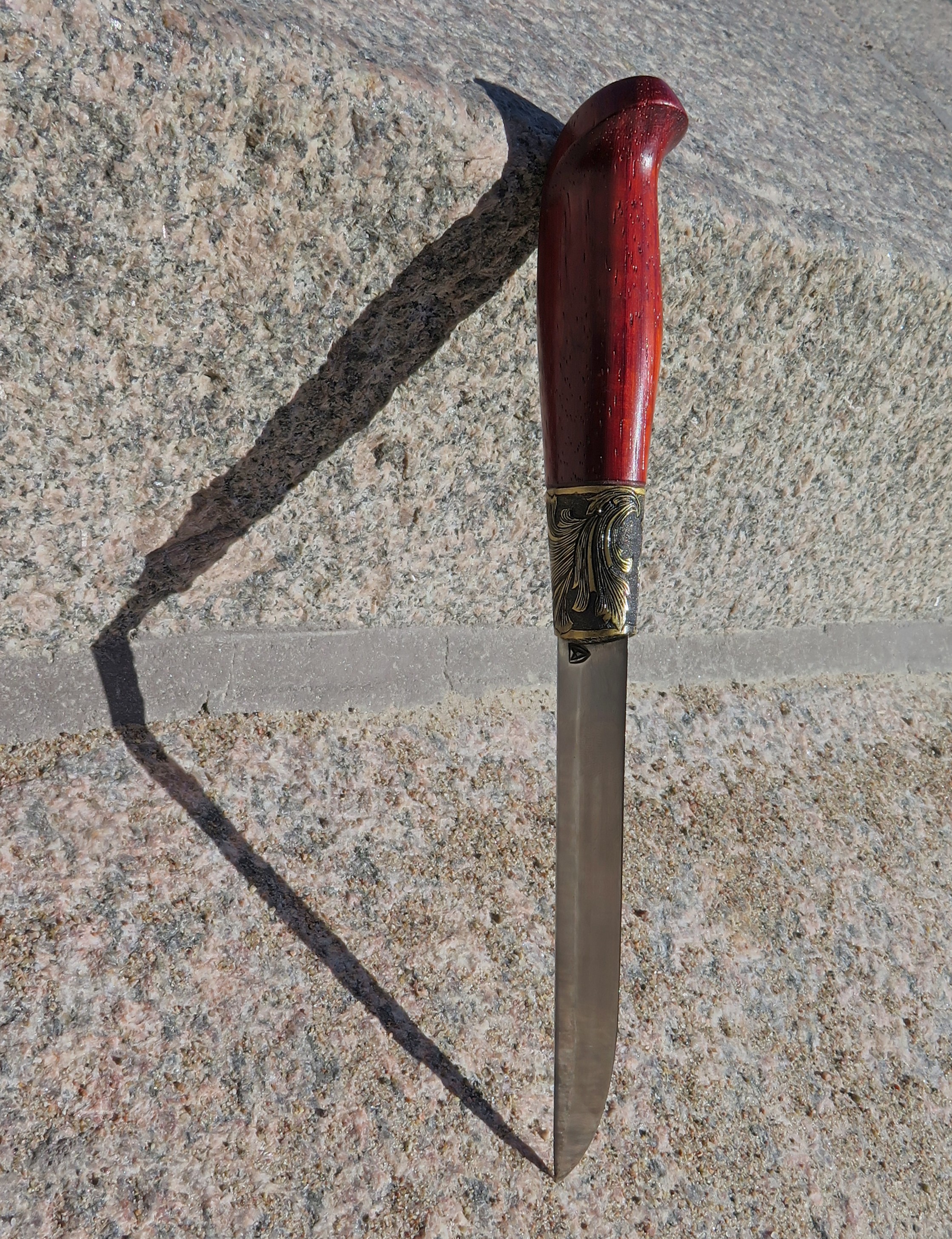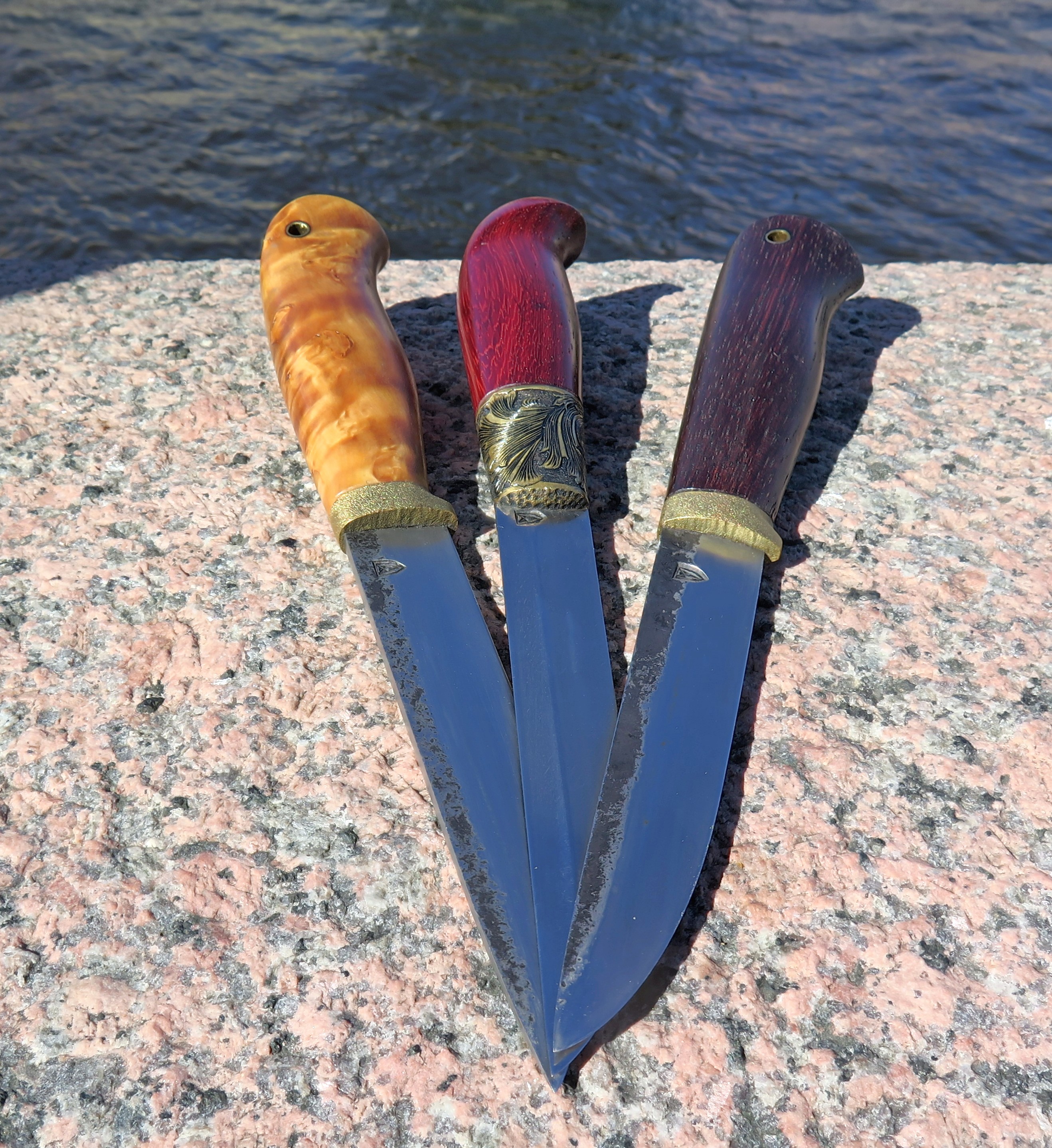 Люблю ножи, хотя, кто их не любит? Первый нож сделал в 9 классе, с ножа рубанка, хотя рисовал их, наверное, всегда, что и продолжаю делать и по сей день. Ножи нравятся разные и делал разные тоже, от обычных  рабочих трудяжек  до полочников, как я называю арт.  Не кузнец, не ковал, хотя побывал в кузнях многих кузнецов и мастеров, не моё это, хоть и завораживает зрелище горячей стали и огня…