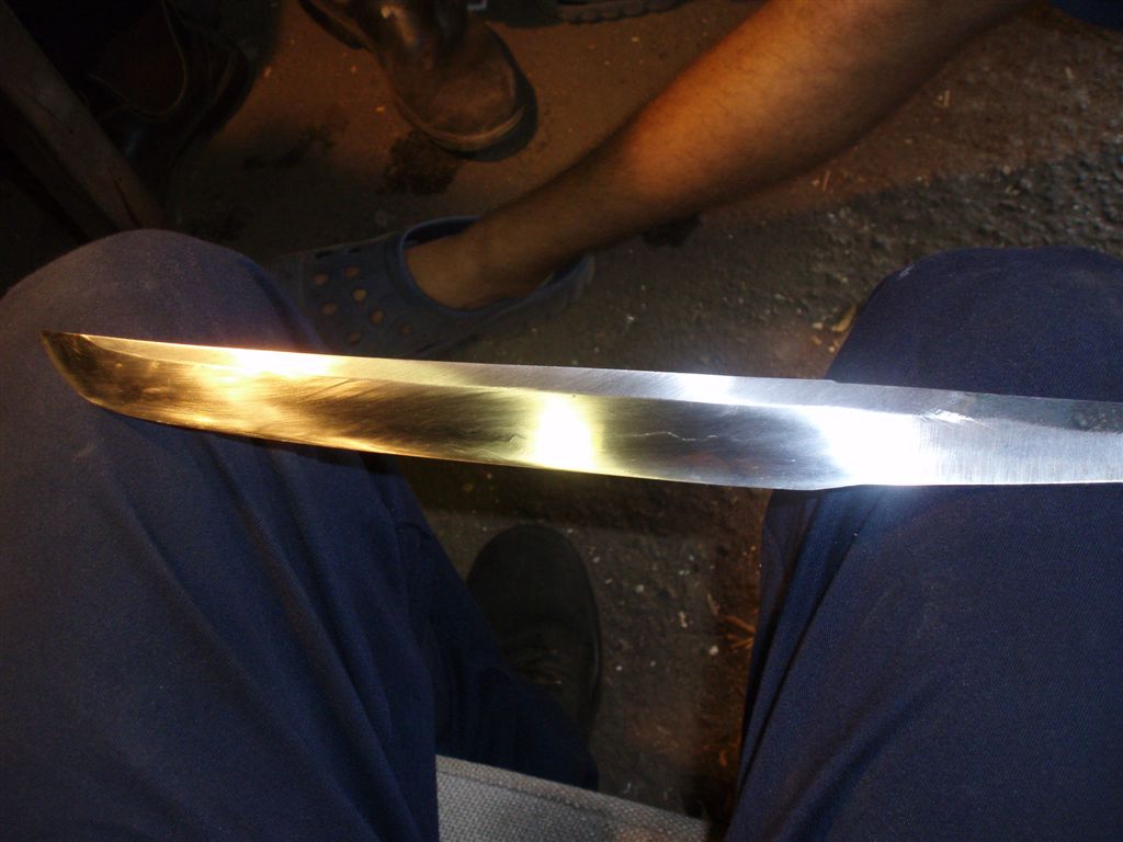 отличная линия хамона! ;):):) Я тоже ставлю на технологии 20 века ( на Марка то бишь). Что касается японского Холдного Оружия, то сейчас можно и сталь чистую купить а не колбасить тамахаганэ до мор.. ева дня в болотАх выдерживать, хамон получится и на не тамахаганэ и без рисовой бумаги-( сварка и проволока рулит), но это будет не совсем Японское Холодное Оружие. Ну и самое главное, никто Марка не позиционировал как будущего мастера Японского Оружия, если связали с японой из-за фотки, так и интегралы проскакивают. отличий увидел несколько. 1. разрез глаз . 2. у Кико травление (только без мордобоя, но у Паши Борза травление как минимум не хуже ), а у Марка настояшая линия зонной закалки ( или трехслойка?).Тема хорошая, и парень заслужил чтоб о нем написали, почему нет?тем паче что не в центральной прессе, а на сайте ножелюбоделов;) А что в ,, Будем Знакомы,, лучше очередную фотку шашлыков выставить? Чы шо? Чы я не розумию? У многих усидчивости хоть на полировку такую хватит? А там не только полировка, там потом умылся не раз... До гениальности еще поработать надо будет( хотя уже лучше например моих уродцев), но и редбулл с водочкой не кушает, а Делом занят. Молодца! ( и Марк и Мацуда). П.С. хлопцы, не ругайтесь, неужели не интересней на чем полировал? На камне , на наждачке наклеенной, аль еще на чем? Что за сталь? состав обмазки?как ковал, и т.д. Не? не цикаво? все имхо конечно, не бейте!;)ппс. и пожалуйста, не убеждайти Марка в гениальности! одного моего знакомого, уже убедили....в гениальности. сгорел в лучах славы .Но если заслужил- похвалить не зазорно! ППСС Старшина, без обид, давай помиркуем... если читают этот пост , то уже возле компа, аль с телефона. Не? , а вот слушать про Жопы, Курилы, домашние тапочки, и ботинки на большой палец, оно надо кому? Ты про Курилы, Гандурас и т.д. , кто-то до не заполненых профайлов наезжает,( свой бы проверили) и т.д. да кому оно надо блин. Брат, я тебя лублу ;), но ты таке лепишь порой! Занавес! ;):) ,, Давайте японам нос утрем,, А давай ты сбросишь костями сюды, и заварганишь НАКОНЕЦ ;):) трехслойку из двух углеродок? заодно Мацуде платочек носовой сошьешь. С Уважением ко всем!