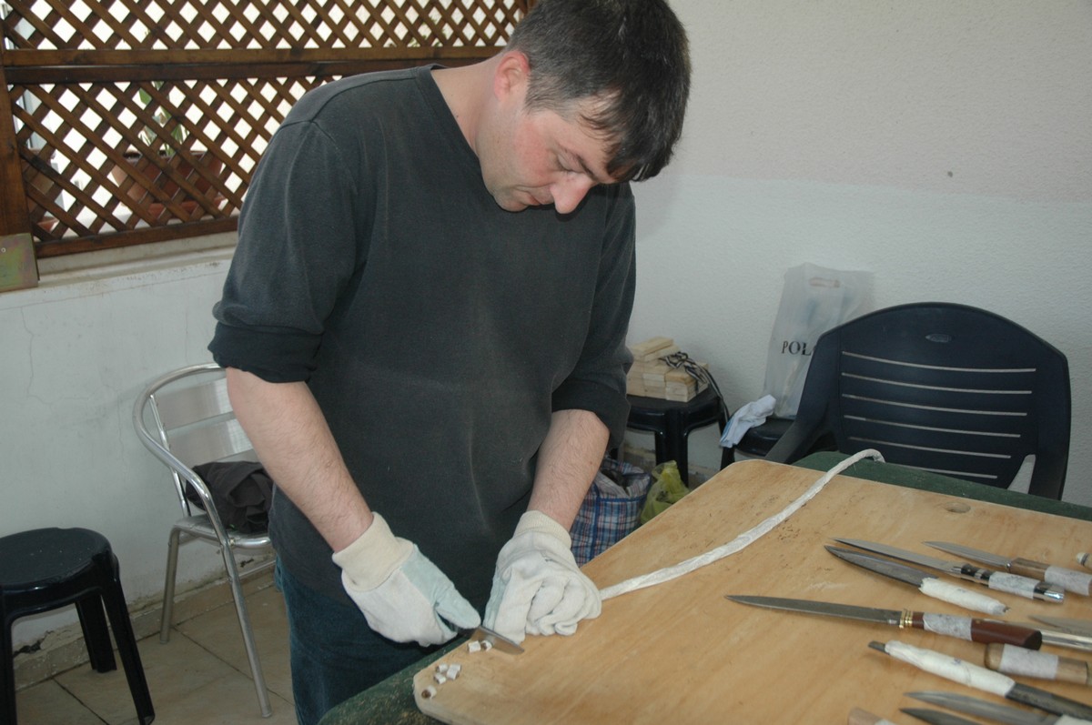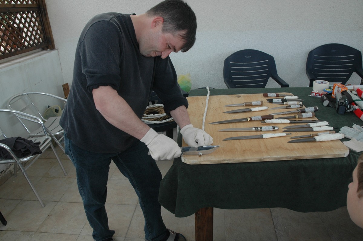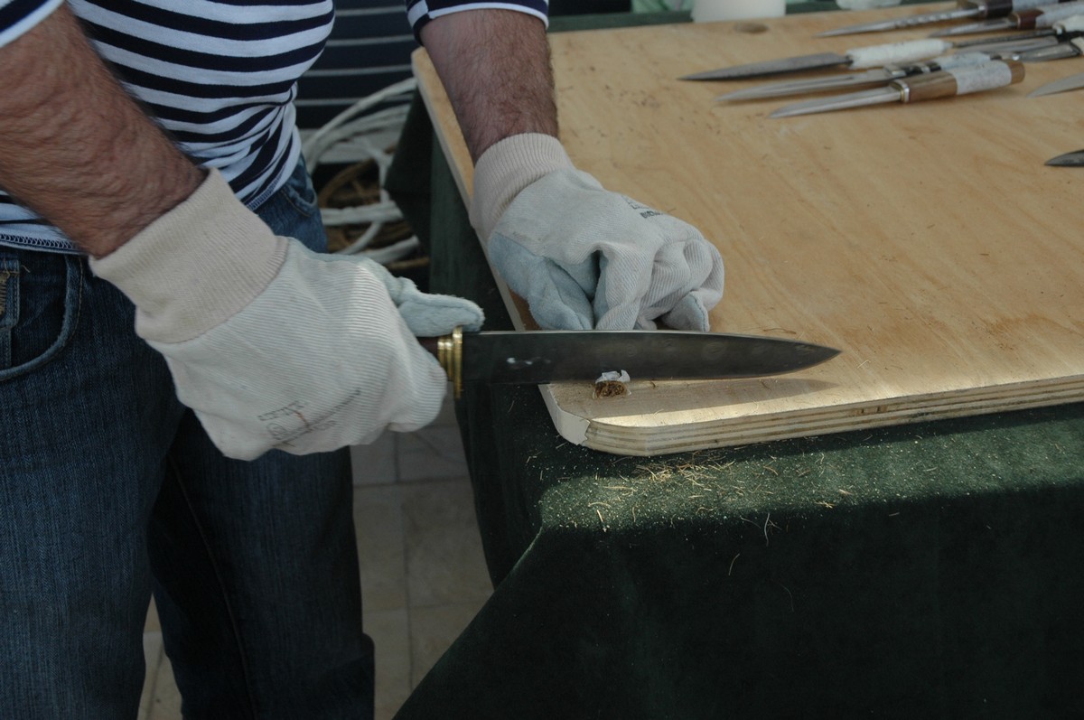 Мы не испытывали нож на укол. По идее, если учитывать его общую геометрию, в материал он должен входить хорошо. Так же, думается, что при рубке, быстрой и вхлест, нож должен показать неплохой результат. Но хотелось бы увидеть на ноже спуски повыше, либо, хотя бы, площадь режущей кромки на пару миллиметров больше, при тех же спусках, с более тонкими подводами. И хорошую цепкую рукоять. И тогда он еще себя покажет.
