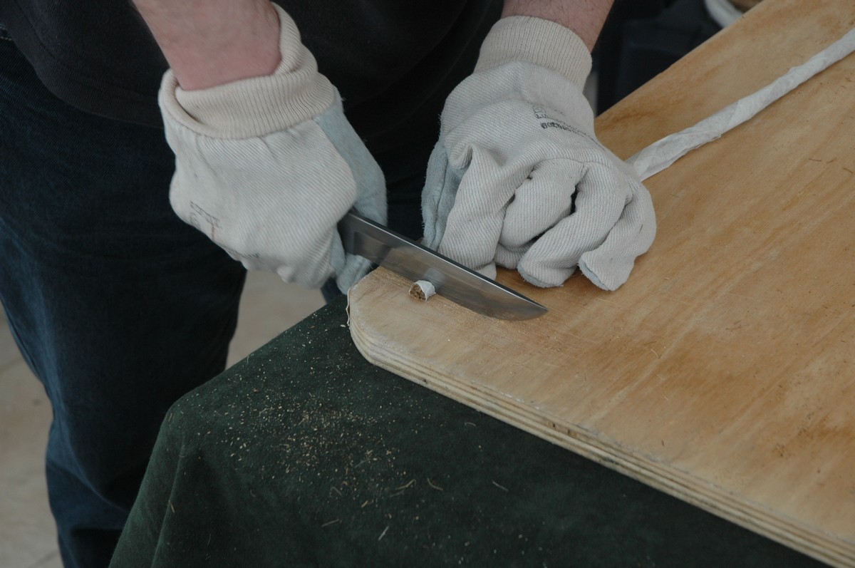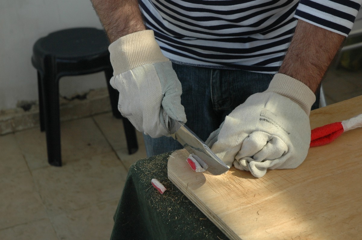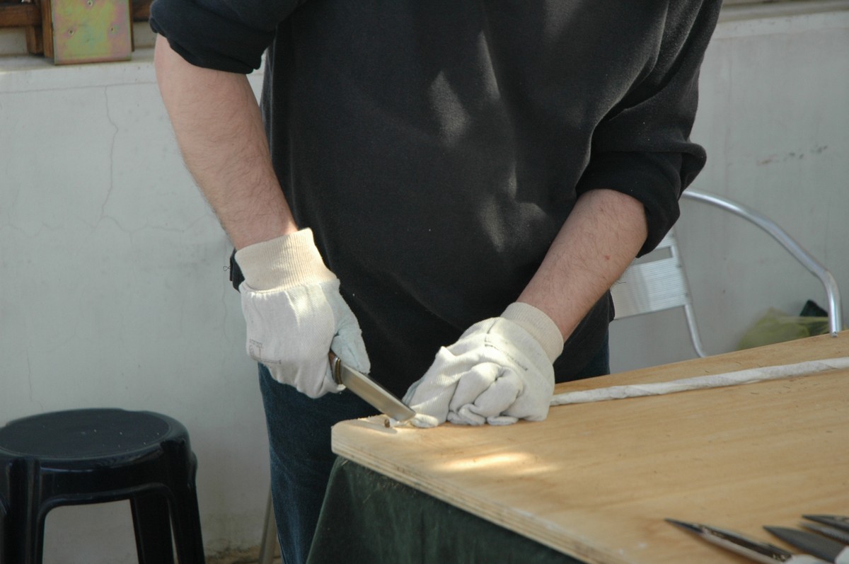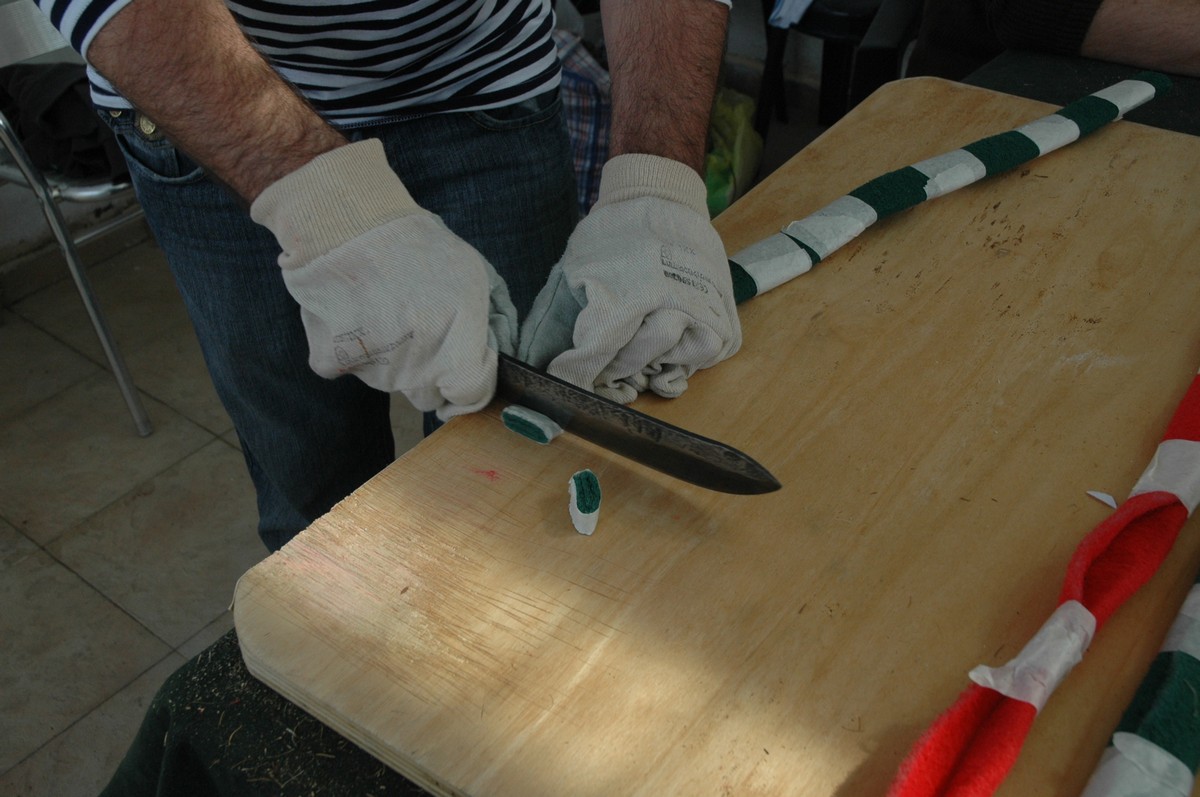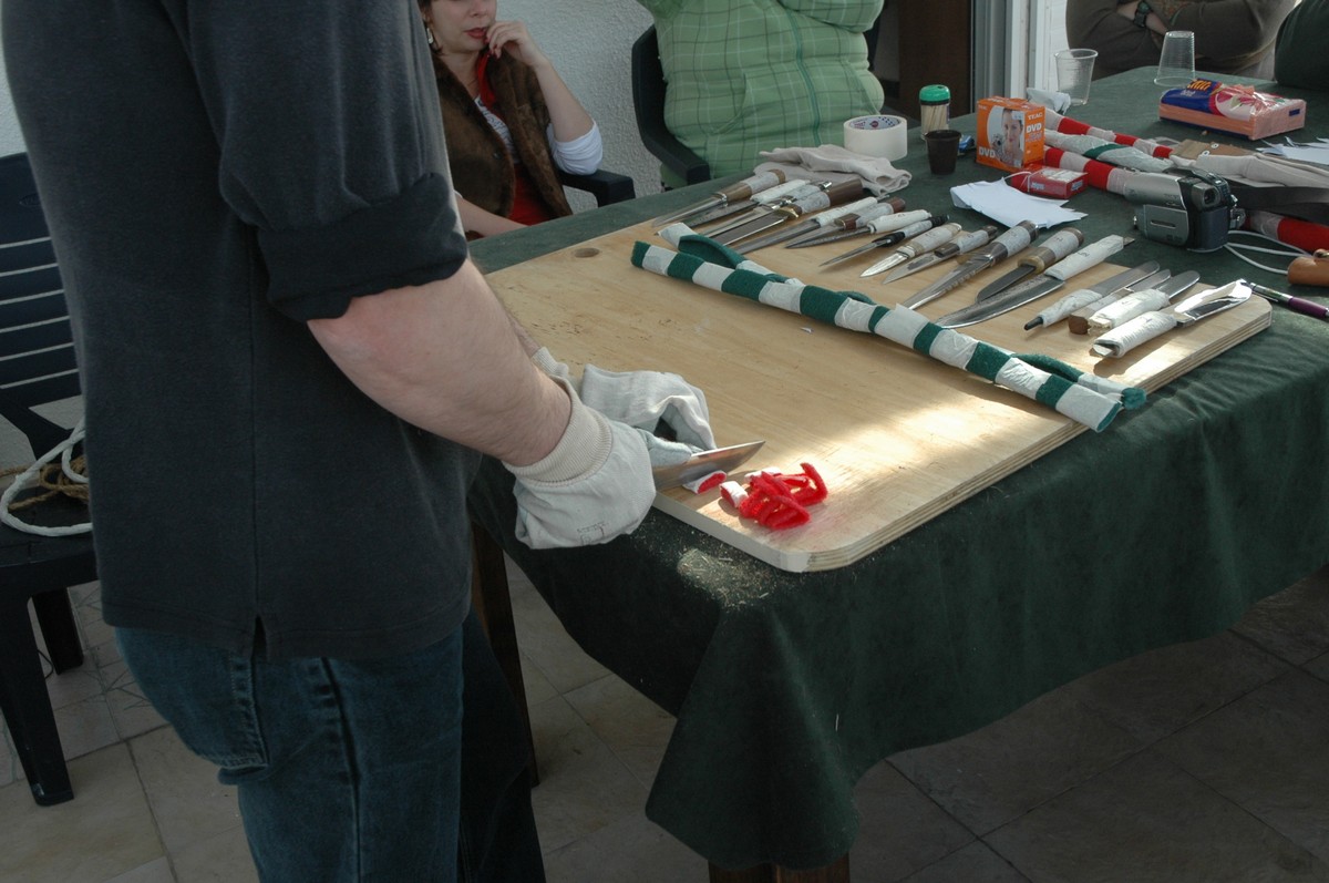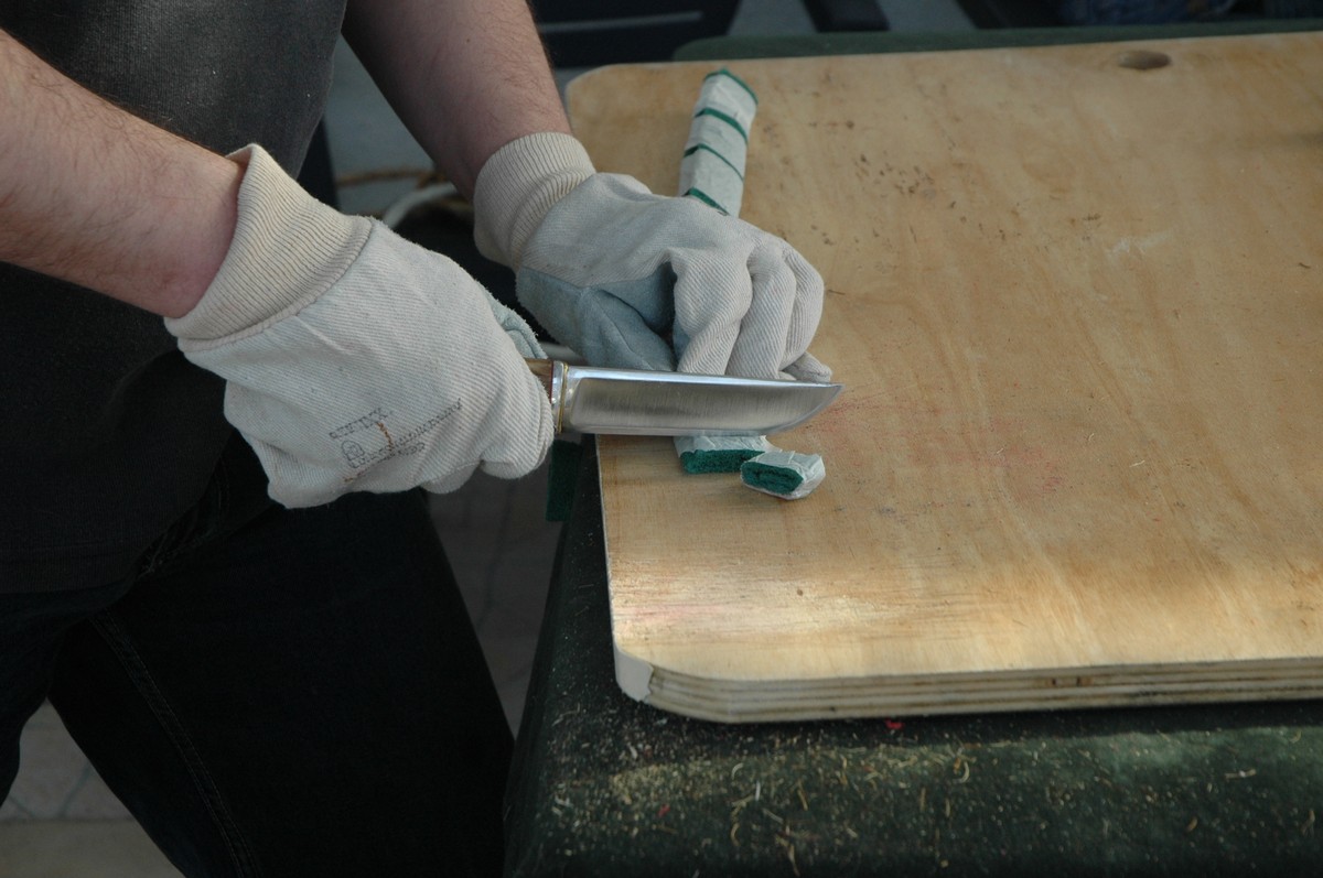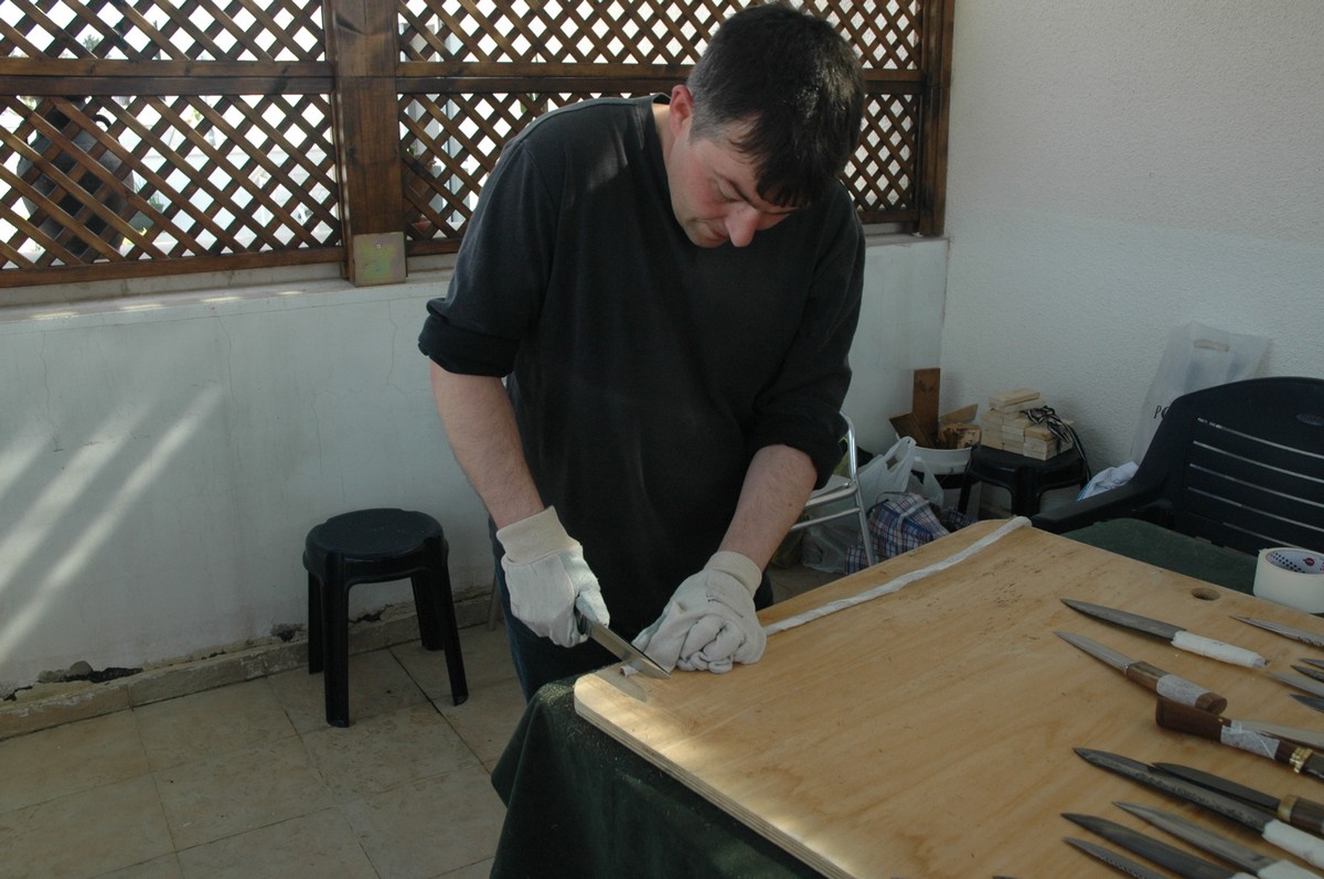 Тут вроде бы наметилось некое улучшение, несмотря на такой непростой материал для теста. По крайней мере, первые пару резов нож сделал четко и без излишнего напряга. Потом окончательно стал сопротивляться при резе, норовя выскочить из руки. Поменяли угол реза, но, увы, нож тут же сел окончательно, перестав даже надрезать. Пришлось остановить тесты, смирившись с положением…