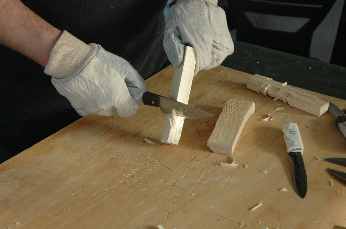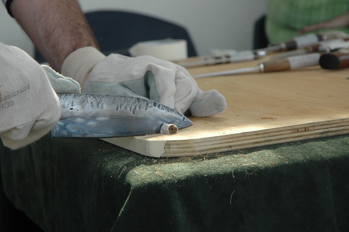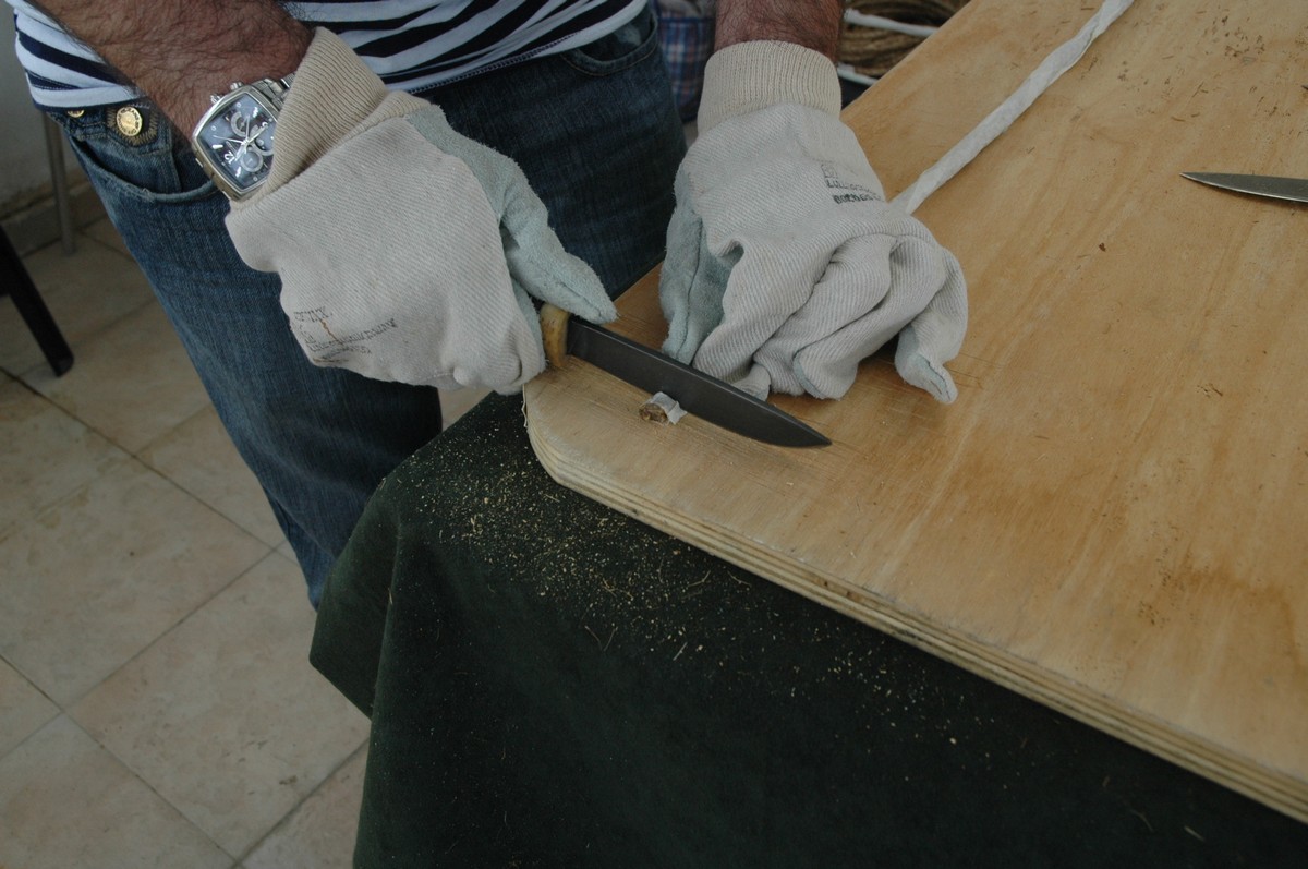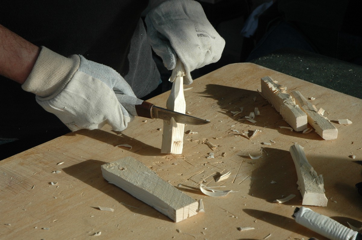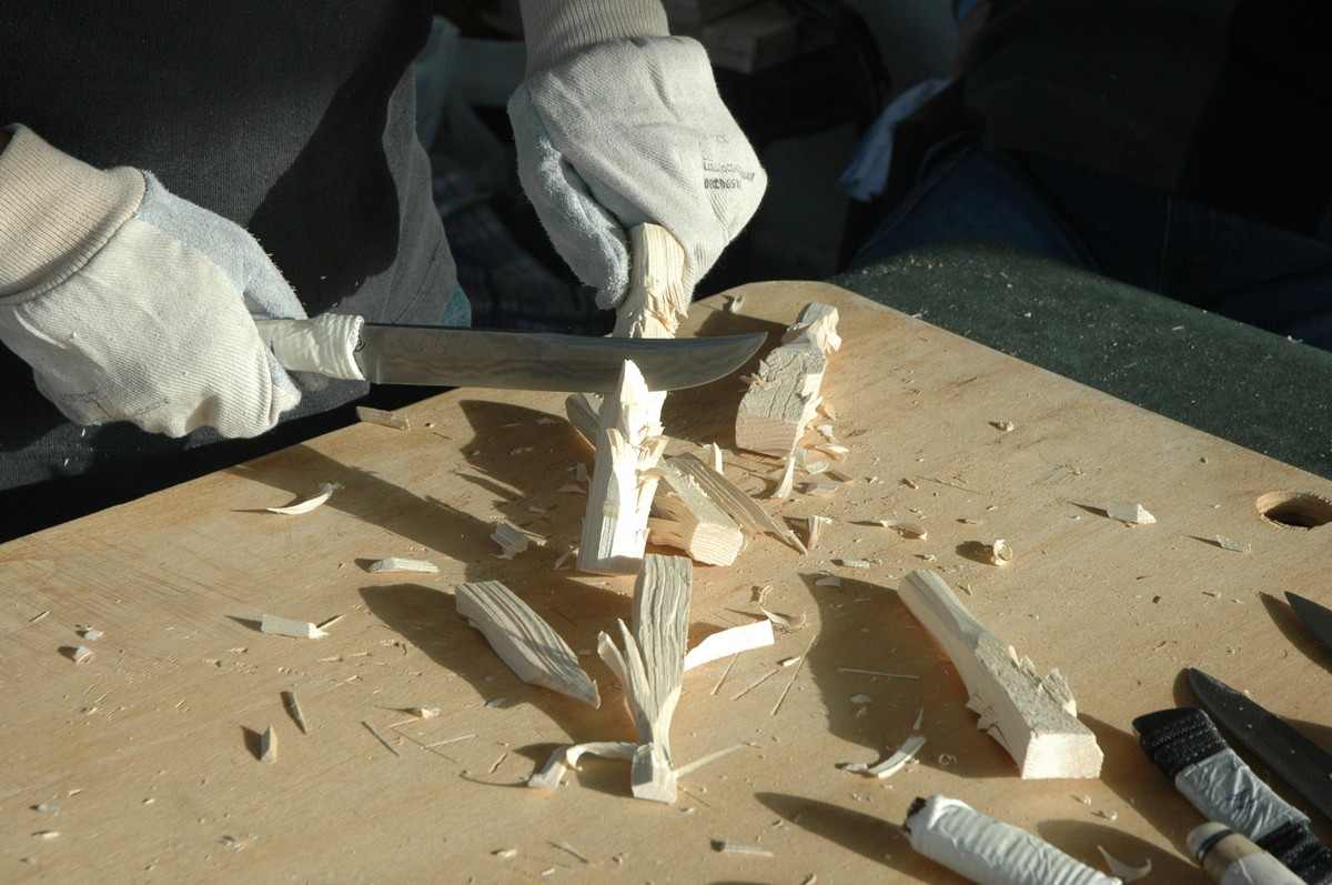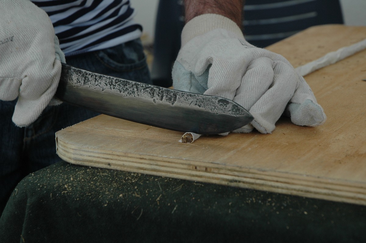 Мы уже как-то настроились на то, что нож показал результаты, указанные выше. И посему к строганию подошли со всей ответственностью, учитывая опыт удержания этого ножа с такой узкой рукоятью. Дощечку он не расколол, но этого и следовало ожидать, учитывая слишком легкий клинок. Строгать вроде бы было удобно, контролировать можно легко процесс, но, увы, нож строгал крайне неохотно. Стружку снимал с трудом, отщипывая щепу небольшими кусочками. И стал вязнуть в дереве после нескольких движений. Построгав еще немного для проформы, мы прекратили, поставив 2 балла.